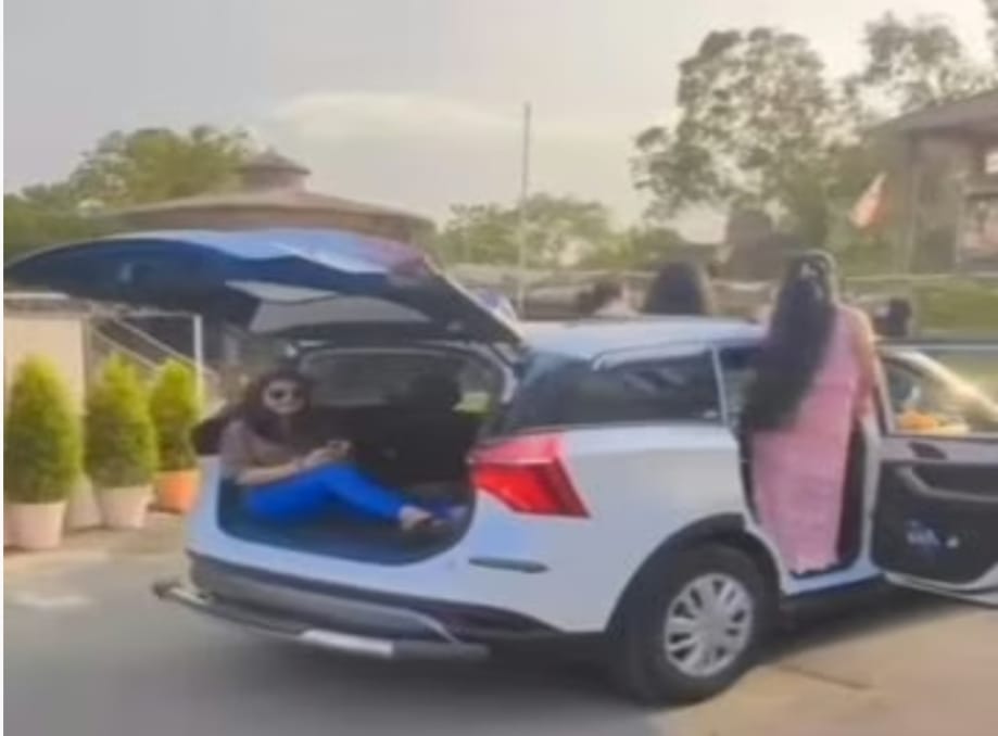 वायरल वीडियो में महिला कार की फ्रंट बोनट पर बैठी नजर आईं। वहीं अन्य युवतियां भी खतरनाक ढंग से उसी कार में सवार थे।