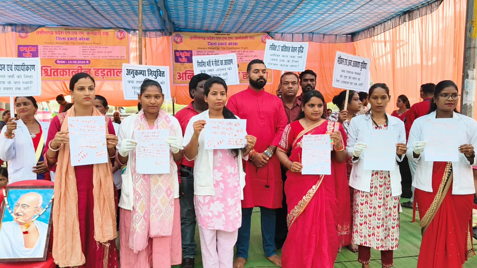 कोरबा के एनएचएम कर्मचारी पिछले तीन दिनों से अपनी विभिन्न मांगों को लेकर जिला मुख्यालय पर धरना-प्रदर्शन कर रहे हैं। इन मांगों में प्रमुख रूप से नियमितीकरण, वेतन विसंगतियों को दूर करना, संविदा कर्मचारियों को स्थायी कर्मचारियों के समान सुविधाएं देना और अन्य लंबित मुद्दों का समाधान शामिल है। कर्मचारियों का कहना है कि सरकार उनकी जायज मांगों को लगातार अनदेखा कर रही है, जिसके कारण उन्हें मजबूरन यह रास्ता अपनाना पड़ा है।