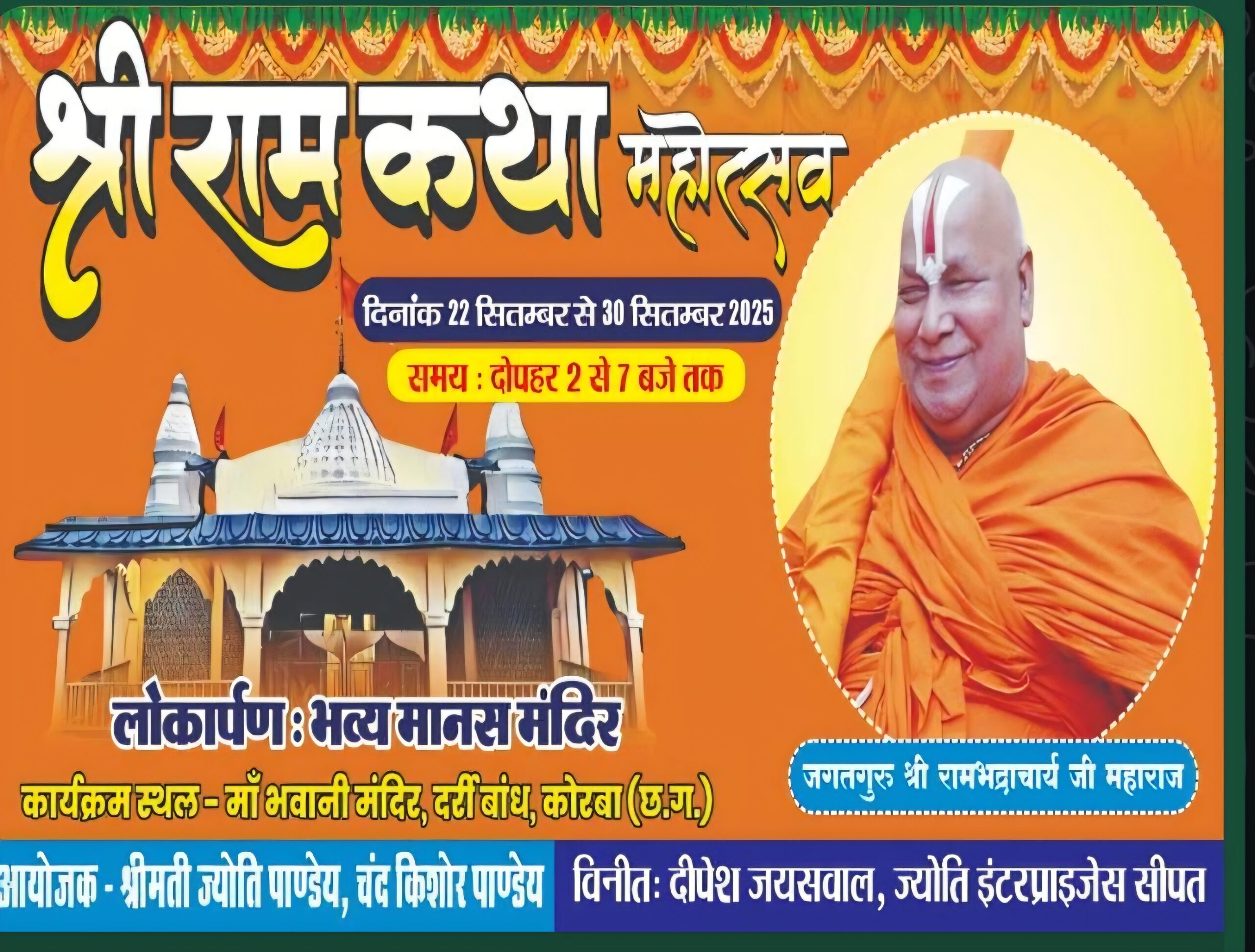 कोरबा। उर्जानगरी कोरबा की पावन धरा में पावन शारदीय नवरात्रि में राम कथा अमृत गंगा प्रवाहित होगी। 22 सितंबर से 30 सितंबर तक भवानी मंदिर परिसर में नव निर्मित भव्य मानस मंदिर में 9 दिवसीय श्रीराम कथा महोत्सव का आयोजन होगा। चित्रकूट से पधारे