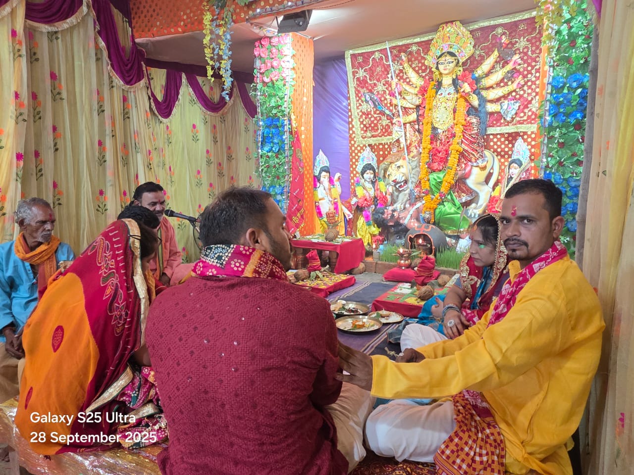 बरपाली वाले आचार्य सुनील कुमार पांडेय द्वारा विधिविधान से मां की पूजा अर्चना आरती संपन्न कराई जा रही है। जिसमें संध्या आरती की थाल सजाकर नन्हीं बच्चियां , माताएं बहनें आस्थापूर्वक आरती में शामिल हो रही हैं।प्रतिदिन संध्या आरती उपरांत आस्थावान भक्तों का समूह मां जगदम्बा के प्रति सेवाभावना लिए भोग वितरण कराकर अपना जीवन धन्य बना रहे हैं। बड़ी संख्या में समस्त ग्रामवासी संध्या आरती में शामिल होकर भोग -प्रसाद ग्रहण कर रहे हैं। प्रतिदिन जसगीत से मां की आराधना की जा रही है।