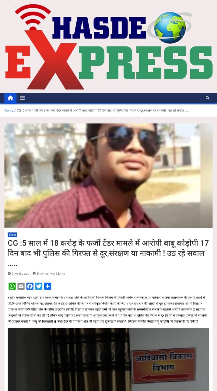 लेकिन बाबू संजय कोड़ोपी फरार था। जिसको लेकर दंतेवाड़ा पुलिस पर भी सवाल उठ रहे थे। आखिरकार दंतेवाड़ा पुलिस ने FIR के 36 दिन बाद ही सही तीसरे व अंतिम फरार आरोपी लिपिक संजय कोड़ोपी को कांकेर से गिरफ्तार कर लिया है।