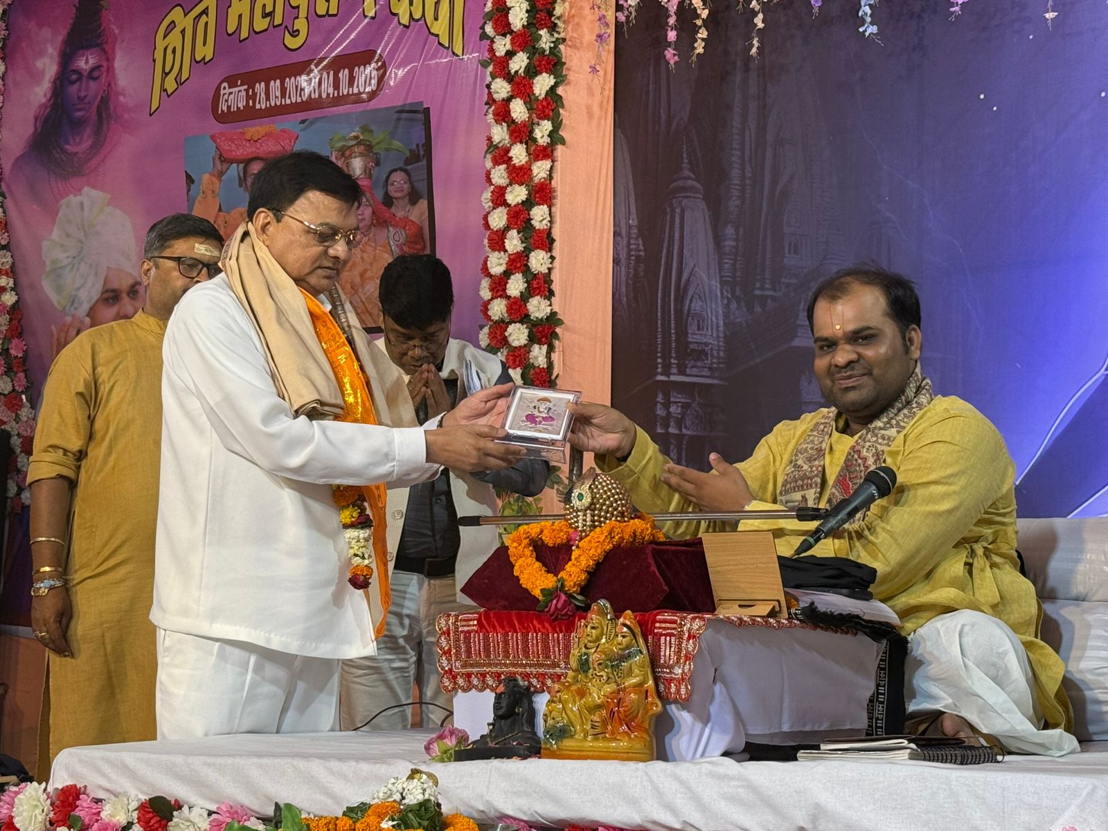 कोरबा। रविशंकर नगर स्थित लक्ष्मी निवास एमआईजी 2/103 में चल रही शिवमहापुराण कथा एवं कलश यात्रा ने पूरे इलाके को भक्ति और अध्यात्म की रंगत से सराबोर कर दिया है। गुरुवार को कथा के पांचवें दिन भगवान शिव द्वारा त्रिपुरासुर वध का रोमांचक प्रसंग सुनाया गया। वृंदावन से पधारे पूज्य श्री राहुल कृष्ण जी महाराज ने अपने दिव्य वचनों से जब त्रिपुरासुर वध की वीरगाथा का वर्णन किया तो पूरा परिसर “हर-हर महादेव” के जयघोष से गूंज उठा। इस अवसर पर छत्तीसगढ़ शासन के श्रम, उद्योग, आबकारी एवं सार्वजनिक उपक्रम मंत्री लखनलाल देवांगन भी विशेष रूप से उपस्थित रहे और श्रद्धापूर्वक कथा श्रवण किया।