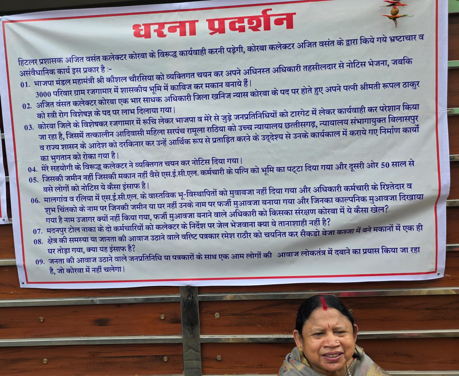 इधर केंद्रीय गृहमंत्री अमित शाह आज छत्तीसगढ़ प्रवास पर हैं। बस्तर दशहरा कार्यक्रम में दंतेवाड़ा जिले में आयोजित विभिन्न कार्यक्रमों में शामिल हो रहे,ऐसे में सरकार एवं संगठन की श्री कंवर की धरना प्रदर्शन से चिंता बढ़ गई है। 2 बार के कैबिनेट मंत्री 7 बार के विधायक के अपनी ही पार्टी के सरकार के खिलाफ धरने से हो रही फजीहत को रोकने संगठन मान -मनौव्वल में जुट गया है। पर श्री कंवर फिलहाल कलेक्टर हटाने के प्रमुख मांग पर अड़ गए हैं। जो उनके लिए साख का विषय बन गया है।