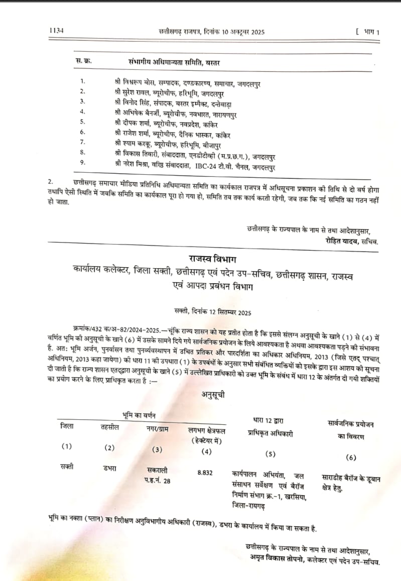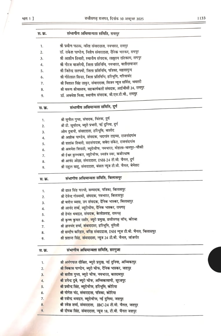 कोरबा/बिलासपुर। कोरबा जिले के पत्रकारों के लिए बड़ी राहत और गर्व की खबर — अब अधिमान्यता आवेदन पहचान की कमी या औपचारिक त्रुटियों के कारण अमान्य नहीं होंगे। छत्तीसगढ़ शासन ने पत्रकारों की अधिमान्यता और कल्याण के लिए गठित संभागीय अधिमान्यता समिति (बिलासपुर संभाग) में कोरबा के वरिष्ठ पत्रकार कृष्ण कुमार राठौर को सदस्य के रूप में नामांकित किया है। शासन की ओर से 10 अक्टूबर 2025 को आदेश जारी कर दिया गया है, जिसका राजपत्र में भी प्रकाशन हो चुका है।