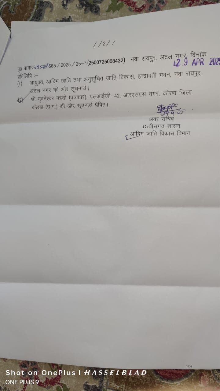पिछले डेढ़ साल से इनके भ्रष्टाचार को लेकर मुखरता से प्रदेश के मुखिया मुख्यमंत्री से लेकर ,मुख्य सचिव , प्रमुख सचिव,विभागीय सचिव ,कमिश्नर तक को पत्र व्यवहार किया गया । जिनके यहाँ से प्रकरण के संदर्भ में जांच के आदेश तो जरूर जारी हुए पर आज पर्यंत जांच ही पूरी नहीं हुई। हाल ही में 18 मार्च को अंतिम बार प्रमुख सचिव आदिम जाति तथा अनुसचित जाति विकास विभाग के यहाँ प्रेषित पत्र के तारतम्य में अवर सचिव आदिम जाति विकास विभाग द्वारा 3 अप्रैल को पत्र जारी कर एक सप्ताह के भीतर उल्लेखित तथ्यों की जांच कर प्रतिवेदन अभिमत सहित मांगा गया था। जिसमें हमेशा की तरह कलेक्टर कार्यालय के प्रश्रय की वजह से जांच ही शुरू नहीं हुई थी। इस बीच सहायक आयुक्त के पद पर पदस्थ कल्याण सिंह मसराम 30 अप्रैल 2025 को सेवानिवृत्त हो गए।हालांकि 5 साल के 18 करोड़ के विभागीय कार्यों में फर्जी टेंडर ,फर्जी विज्ञापन प्रकाशन लगा शासन से दगाबाजी करने वाले मामलों में श्री मसराम भी 26 अगस्त से पूर्व सहायक आयुक्त आनंद जी,बाबू कोड़ोपी के साथ जेल की हवा खा रहे।