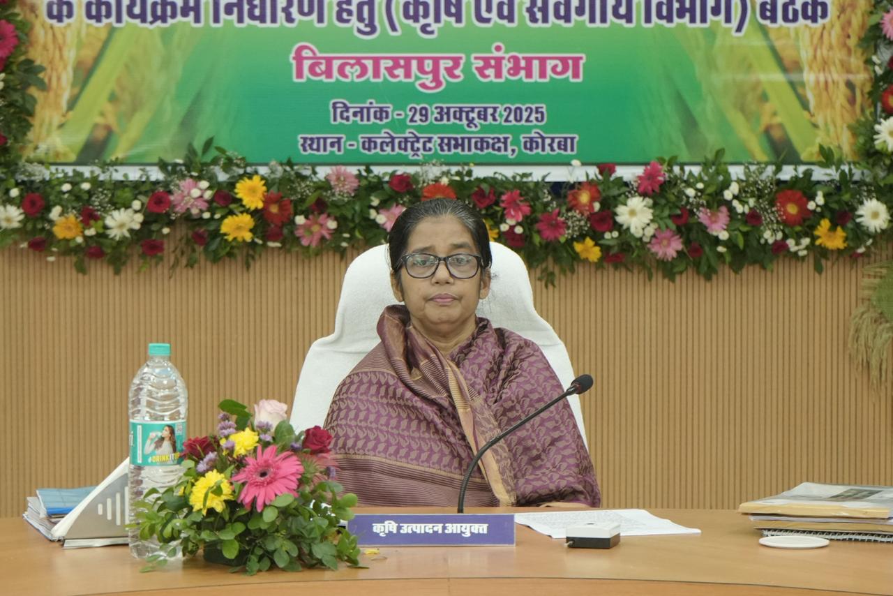 कोरबा । कृषि व्यवस्था को अधिक सुदृढ बनाने तथा आगामी फसल सीजन की तैयारी के लिए कृषि उत्पादन आयुक्त श्रीमती सहला निगार की अध्यक्षता में बुधवार को कोरबा कलेक्ट्रेट सभाकक्ष में खरीफ वर्ष 2025 के प्रगति तथा रबी वर्ष 2025-26 कार्यक्रम निर्धारण हेतु बिलासपुर संभाग के अधिकारियों को समीक्षा बैठक आयोजित हुई।