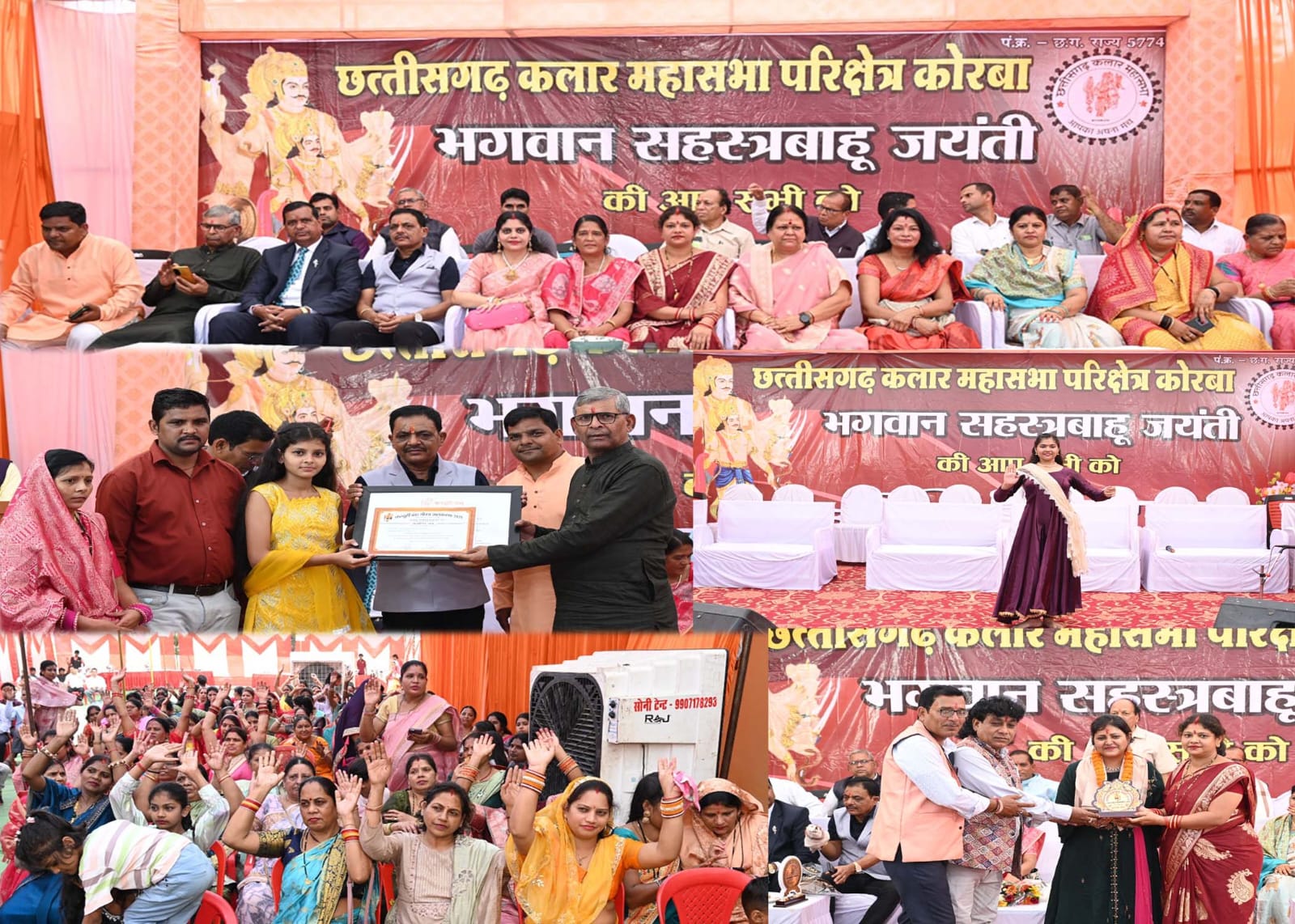 कार्यक्रम में बतौर मुख्य अतिथि के रूप में पूर्व महापौर नगर पालिका निगम कोरबा रेनू अग्रवाल ,पूर्व महापौर राजकिशोर प्रसाद ,जायसवाल समाज के प्रदेश अध्यक्ष विजय जायसवाल ,महिला अध्यक्ष श्रीमती सरोज डनसेना , उपाध्यक्ष महिला कमेटी श्रीमती पुष्पा जायसवाल ,महासभा महासचिव रूपेंद्र जायसवाल, कोरबा प्रभारी टीकाराम ,जिला अध्यक्ष महिला कमेटी श्रीमती कुसुम डनसेना ,जिला अध्यक्ष युवा कमेटी रामकुमार जायसवाल की उपस्थिति में कार्यक्रम संपन्न हुआ । जहां कार्यक्रम की मुख्य अतिथि पूर्व महापौर श्रीमती रेनू अग्रवाल ने भगवान सहस्त्रबाहु की पूजा अर्चना की । उन्होंने अपने संक्षिप्त उद्बोधन में कहा कि जायसवाल कलार समाज निरंतर देश की प्रगति और समाज की प्रगति के लिए काम कर रहा है। समाज के बच्चे निरंतर विभिन्न दिशाओं में आगे बढ़ रहे हैं खास तौर पर पढ़ाई लिखाई के साथ खेल कूद में भी समाज का नाम रोशन कर रहे हैं उन्होंने समाज के सभी पदाधिकारी व समाज के लोगों को सहस्त्रबाहु जयंती की शुभकामनाएं दी। मंचीय कार्यक्रम के उपरांत समाज के बच्चों ने सांस्कृतिक कार्यक्रम की प्रस्तुति दी । जिसमें बच्चों ने आकर्षक डांस प्रतियोगिता में हिस्सा लिया। जिसमें आकर्षक प्रस्तुति देने वाले समाज के प्रतिभावान छात्र-छात्राओं को समाज की ओर से पुरस्कृत भी किया गया । कार्यक्रम के उपरांत समाज के लोगों के लिए खेलकूद का भी आयोजन किया गया । जिसमें समाज की महिलाओं और पुरुषों ने अलग-अलग प्रविष्टियों में खेलकूद में भाग लेकर उन्होंने अपने व अपने बच्चों का भी उत्साह वर्धन किया । कार्यक्रम में विशेष तौर पर 60 साल से ऊपर के महिला और पुरुष ने भी विभिन्न खेल प्रतियोगिताओं में भाग लेकर अपनी सहभागिता निभाई। समाज द्वारा विभिन्न अवसरों पर किए जा रहे हैं कार्यक्रम का अध्यक्ष अनुज जायसवाल द्वारा लोगों को अवगत कराया और भविष्य में समाज द्वारा क्या-क्या कार्य किए जाएंगे इसकी भी समाज के लोगों को जानकारी दी गई। कार्यक्रम मंच संचालक देव जायसवाल व श्रीमती दीप्ति जायसवाल द्वारा किया गया विशेष तौर पर जगदीश प्रसाद डनसेना, विष्णु राम डनसेना, पुरुषोत्तम,अनिल कुमार, विजय,संजीव,वीरेंद्र,राम भजन,रामलाल, सम्मेलाल,सुभाष,पुष्पेंद्र,नरेंद्र,सुरेश, राजेश्वर, हरीश,अशोक,हरेंद्र,शत्रुघ्न, मनोहर,जगत, मधु,प्रभात,घनश्याम,लखन,सहित समाज के विभिन्न पदाधिकारी उपस्थित रहे।