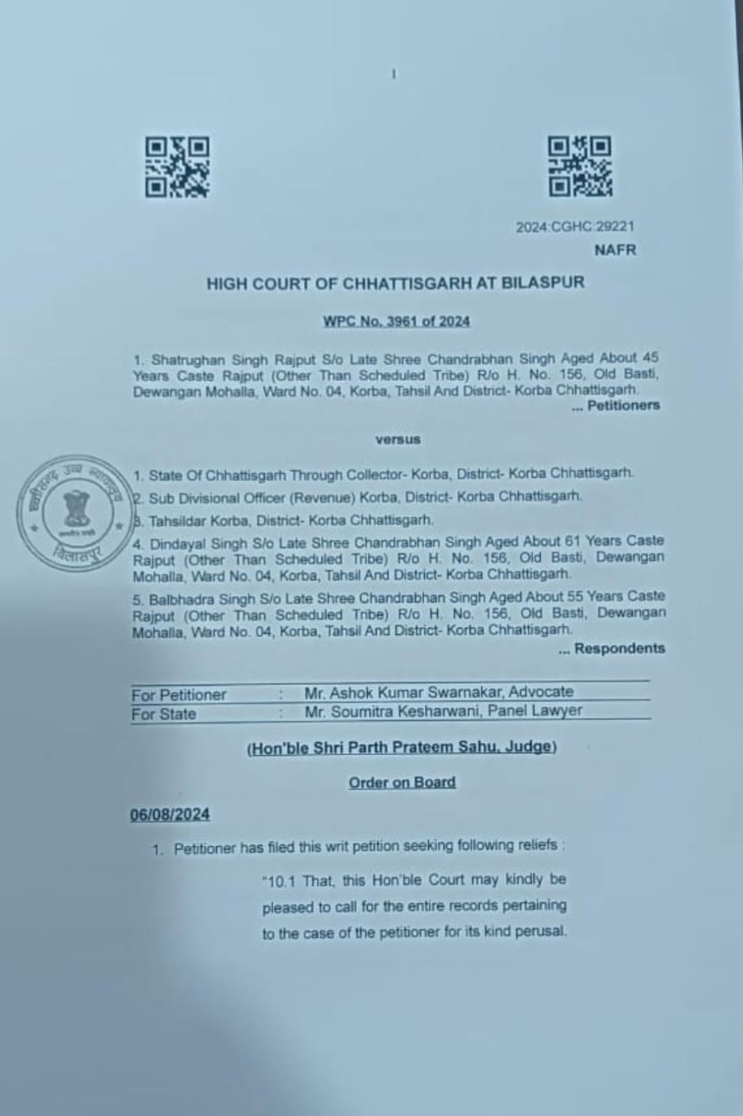 हालांकि, इस पूरे प्रकरण में अब एक नया मोड़ सामने आया है। कोरबा पुरानी बस्ती निवासी शत्रुघ्न सिंह राजपूत ने कलेक्टर से शिकायत कर दावा किया है कि जिस भूमि को सरकारी बताया जा रहा है, वह दरअसल उनकी पुश्तैनी संपत्ति है।