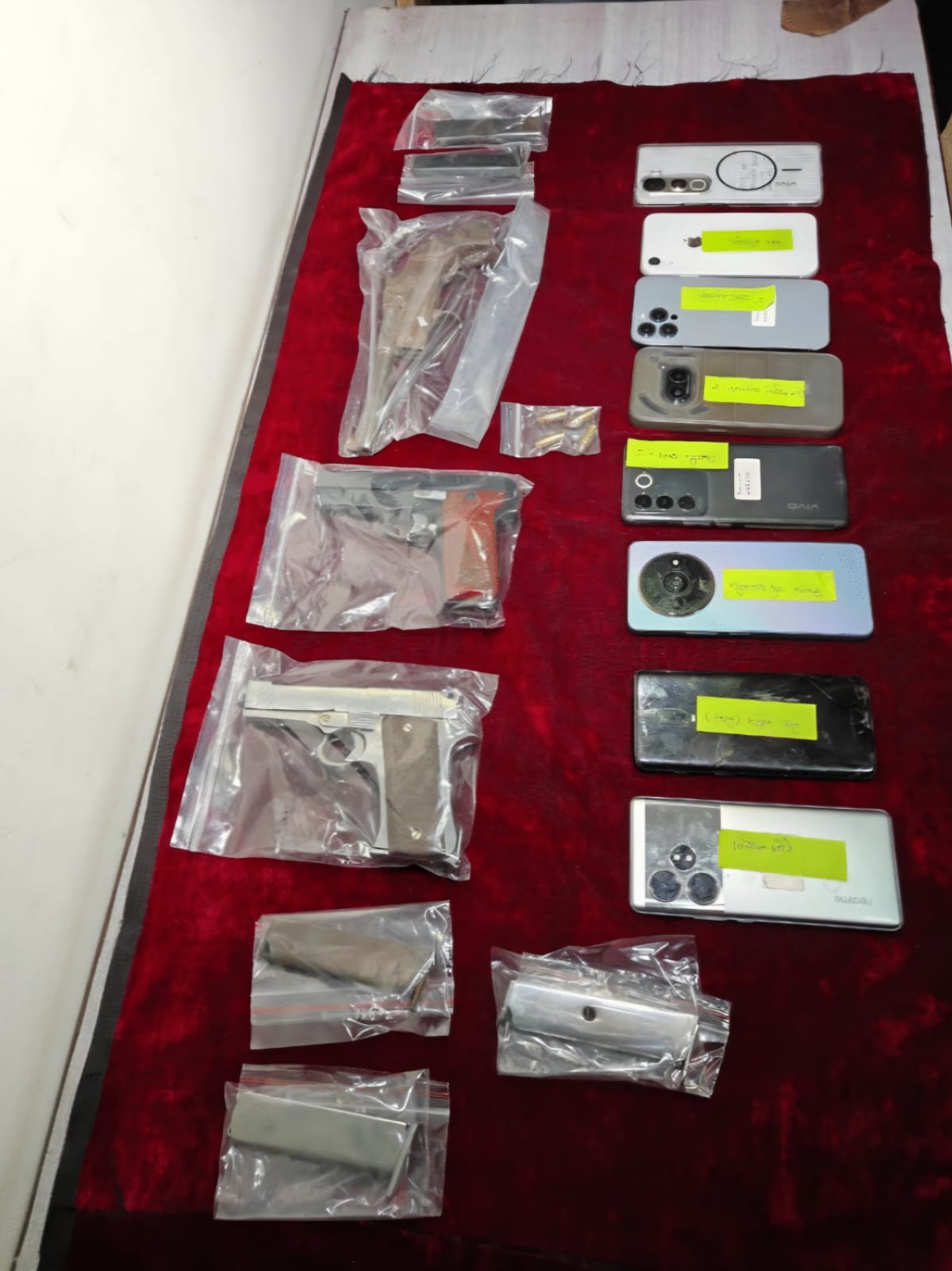 चले हुए कारतूस के खोखे – 13 नग,मोबाइल फोन – 05 नग