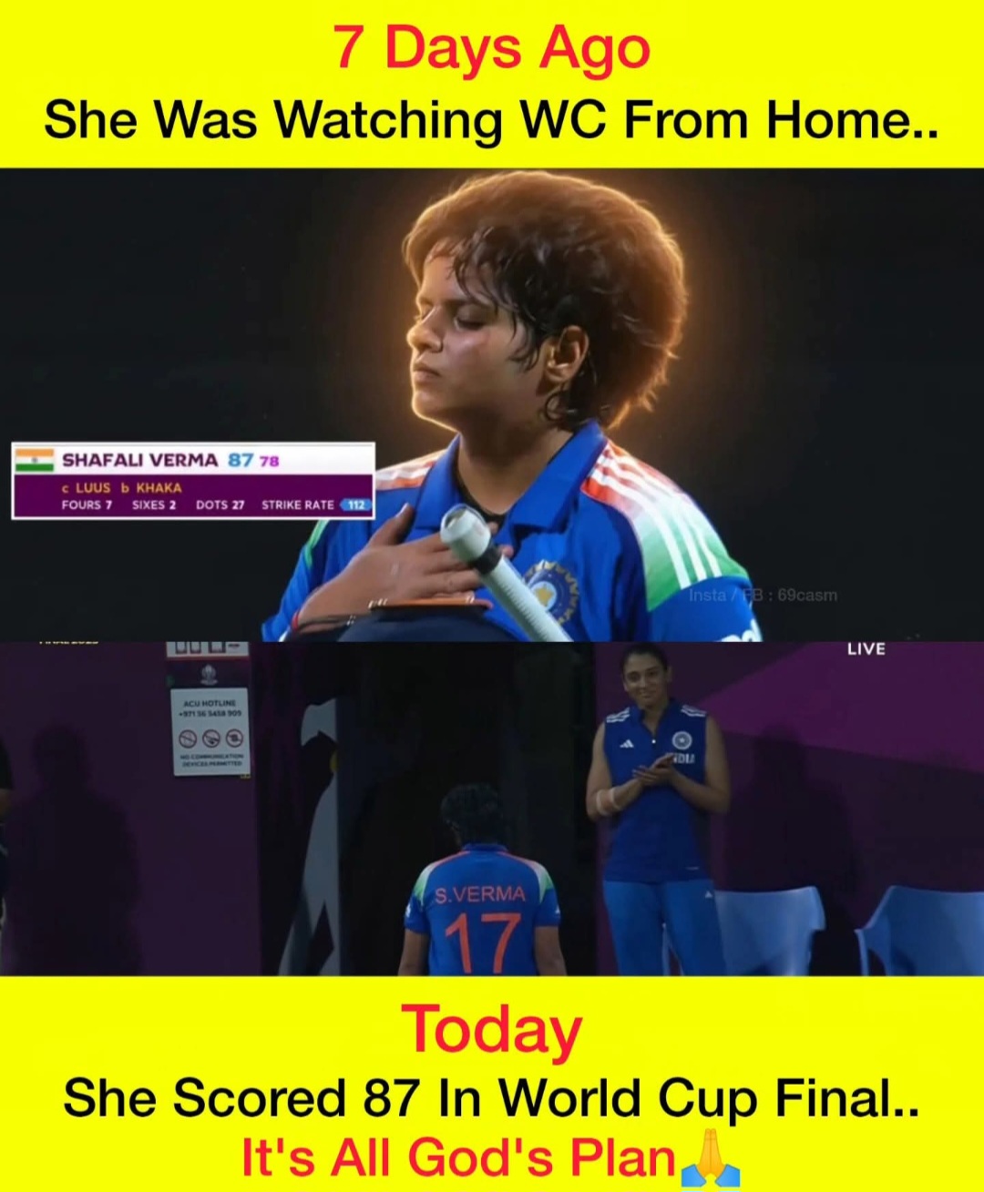 खेल। शेफाली वर्मा… टीम इंडिया की वह खिलाड़ी जिन्हें ऑस्ट्रेलिया के खिलाफ ICC वर्ल्ड कप 2025 के सेमीफाइनल मैच से ठीक पहले भारतीय टीम में शामिल किया गया था. दरअसल, ओपनिंग बल्लेबाज प्रतीका रावल को वर्ल्ड कप के अंतिम लीग मैच के दौरान चोट लग गई थी, जिसके कारण वह टूर्नामेंट से बाहर हो गई थीं.प्रतीका रावल की चोट शेफाली वर्मा के लिए वरदान साबित हुई और उन्होंने भारत को वर्ल्ड कप जिताकर ही दम लिया.