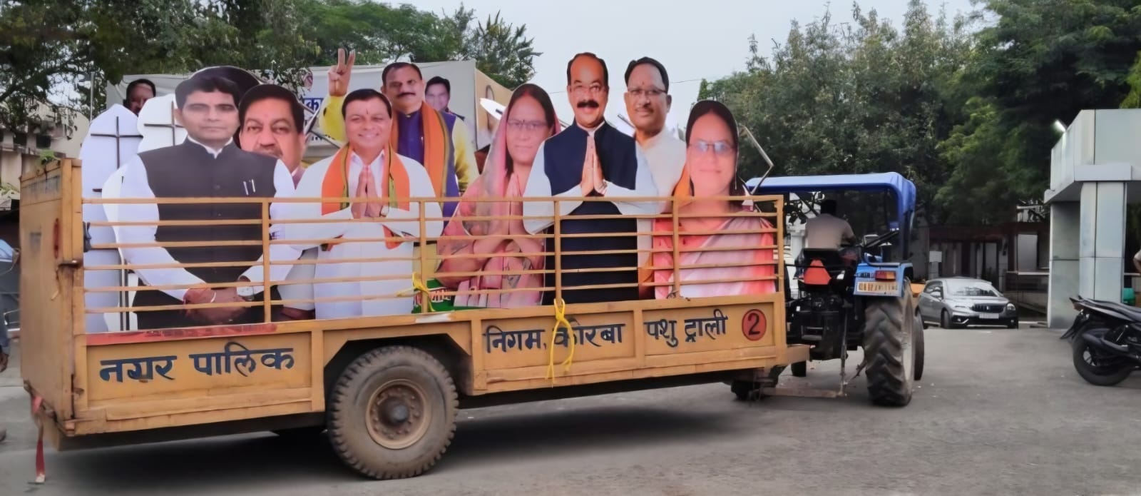 गौरतलब है कि राज्य स्थापना के रजत जयंती वर्ष के अवसर पर घंटाघर स्थित डॉ.भीमराव अंबेडकर ओपन थियेटर स्थित मैदान में 02 से 04 नवंबर तक आयोजित हुए राज्योत्सव हेतु कार्यक्रम स्थल पर प्रदेश के मुख्यमंत्री विष्णुदेव साय, उप मुख्यमंत्री अरूण साव, उद्योग मंत्री लखनलाल देवांगन व महापौर श्रीमती संजूदेवी राजपूत के कटआउट लगाए जाने थे, निगम के केन्द्रीय भण्डारगृह से इन कटआउटों को कार्यक्रम स्थल तक पहुंचाने हेतु काऊकेचर वाहन का उपयोग संबंधित अधिकारियों द्वारा किया गया था।