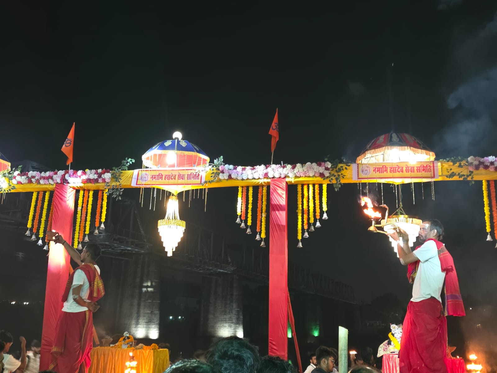 भगवान श्री लक्ष्मीनारायण का 108 लीटर दूध से दुग्धाभिषेक किया गया। इसके उपरांत आचार्य पं. रविशंकर मिश्रा, पं. मोहनधर दीवान, पं. भरत तिवारी एवं पं. भास्कर धर दीवान सहित 11 वैदिक पुरोहितों द्वारा एक समान वेशभूषा में वैदिक मंत्रोच्चारण के साथ भव्य हसदेव महाआरती प्रारंभ की गई, जिससे वातावरण प्रकाशित हो गया। तत्पश्चात् भव्य आतिशबाजी, डीजे साउंड और लाईट शो से वातावरण दिव्य प्रकाश से नहा उठा। श्री लक्ष्मीनारायण महायज्ञ एवं हसदेव महाआरती के आयोजन को कम समय में सफल बनाने के लिए नमामि हसदेव सेवा समिति के