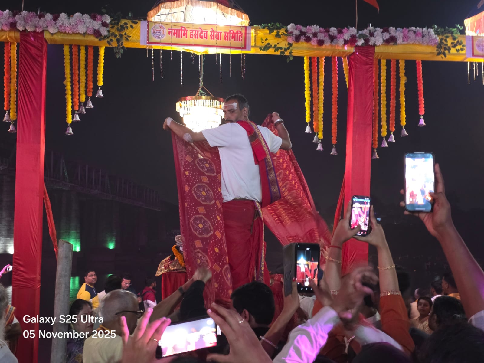 उद्बोधन के उपरांत हसदेव माता को श्रद्धालुओं ने 251 मीटर चुनरी चढ़ाई। तत्पश्चात् भगवान श्री लक्ष्मीनारायण जी का नौकाविहार से मां सर्वमंगला घाट पर आगमन हुआ तथा आगमन के दौरान शंखनाद और डमरूवादन हुआ। इस दृश्य ने देव दीपावली उत्सव का वातावरण और भी मंगलमय बना दिया और उपस्थित जनसमूह भावविभोर हो गये।