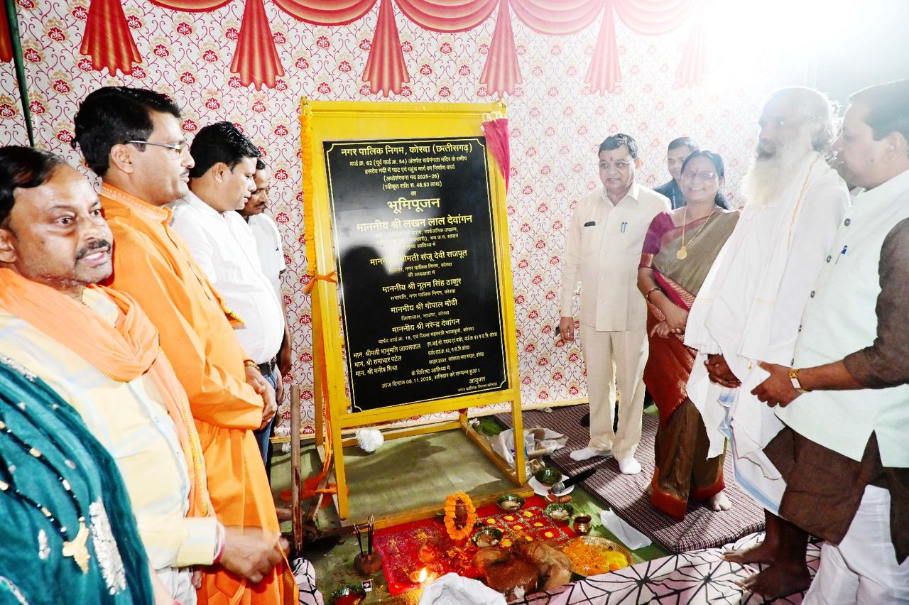 0 निगम के सर्वमंगला जोन के वार्ड क्र. 62 एवं 65 में साढे़ 76 लाख रूपये के विकास कार्यो का उद्योग मंत्री लखनलाल देवांगन ने किया भूमिपूजन