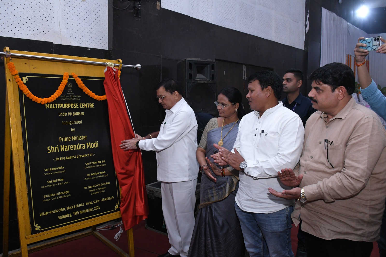 कोरबा। भगवान बिरसा मुंडा की 150वीं जयंती पर जनजातीय गौरव दिवस के अवसर पर कोरबा जिले में राजीव गांधी ऑडिटोरियम में भव्य कार्यक्रम आयोजित किया गया। इस अवसर पर प्रधानमंत्री नरेन्द्र मोदी ने गुजरात के नर्मदा से वर्चुअली आमजनों को संबोधित कर जनजाति गौरव दिवस की शुभकामनाएं दी साथ ही अनेक विकास कार्यों का लोकार्पण, भूमिपूजन और शिलान्यास किया। जिसके अंतर्गत कोरबा जिले में एकलव्य आदर्श आवासीय विद्यालय रामपुर एवं पीएम जनमन के तहत केराकछार में बहुउद्देशीय केन्द्र निर्माण कार्य शामिल है। प्रधानमंत्री श्री मोदी द्वारा स्वीकृत इन परियोजनाओं से शिक्षा, स्वास्थ्य, आधारभूत संरचना और जनजीवन से जुड़े अनेक क्षेत्रों में गति आएगी, जिससे जनजातीय समुदाय के जीवन स्तर में महत्वपूर्ण सुधार होगा। जिला मुख्यालय कोरबा में राजीव गांधी ऑडिटोरियम में आयोजित जिला स्तरीय कार्यक्रम में मुख्य अतिथि के रूप में छत्तीसगढ़ शासन के वाणिज्य, उद्योग, श्रम, आबकारी एवं सार्वजनिक उपक्रम मंत्री लखनलाल देवांगन उपस्थित रहे।