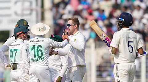 गुवाहाटी। टेम्बा बावुमा की कप्तानी वाली वर्ल्ड टेस्ट चैंपियन साउथ अफ्रीका ने भारत आकर इतिहास रच दिया है. पिछले 25 सालों से भारत में टेस्ट सीरीज जीतने का इंतजार कर रही साउथ अफ्रीका को आखिरकार सफलता मिल गई. गुवाहाटी में खेले गए दूसरे टेस्ट मैच के आखिरी दिन साउथ अफ्रीका ने टीम इंडिया को सिर्फ 140 रन पर ढेर करते हुए 408 रन के रिकॉर्ड अंतर से जीत दर्ज की. इसके साथ ही उसने 2 मैच की टेस्ट सीरीज में 2-0 से क्लीन स्वीप कर लिया. ये भारत की टेस्ट क्रिकेट में सबसे बड़ी हार है, जबकि साउथ अफ्रीका ने 2000 के बाद पहली बार भारत में टेस्ट सीरीज जीती है.
