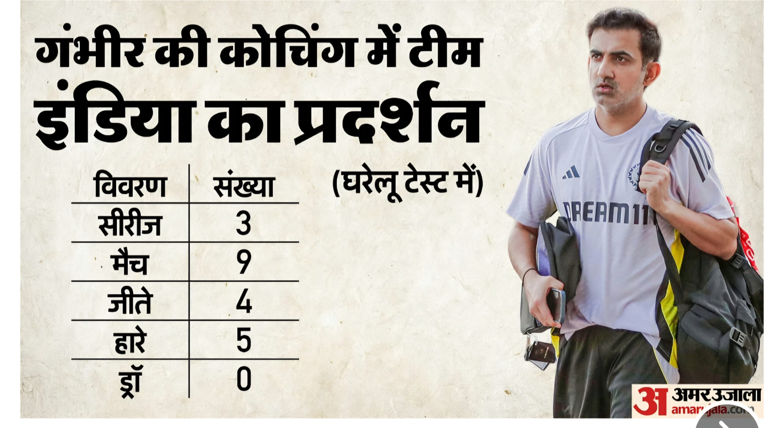 इस तरह 549 रन के लक्ष्य का पीछा कर रही टीम इंडिया 408 रन के बड़े अंतर से हार गई, जो टेस्ट क्रिकेट में रन के लिहाज से भारत की सबसे बड़ी हार है. इतना ही नहीं, 2024 से पहले टीम इंडिया को घर में एक बार भी क्लीन स्वीप का सामना नहीं करना पड़ा था लेकिन पिछले एक साल में दूसरी बार टीम इंडिया का ऐसा हाल हुआ है. पिछले साल न्यूजीलैंड ने 3-0 से सीरीज जीती थी. इस तरह कोच गौतम गंभीर के आने के बाद से घर में भारत की 9 टेस्ट मैच में पांचवीं हार है, जबकि सिर्फ 4 मैच ही जीत पाए हैं.