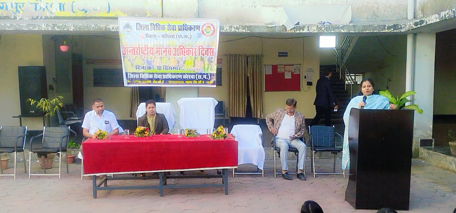 कोरबा। मुख्यमंत्री बाल भविष्य सुरक्षा योजना अंतर्गत संचालित कोरबा जिले के शासकीय प्रयास आवासीय विद्यालय में अंतर्राष्ट्रीय मानव अधिकार दिवस के अवसर पर जिला विधिक सेवा प्राधिकरण कोरबा से विशेष रूप से न्यायिक मजिस्ट्रेट प्रथम श्रेणी सुश्री कुमुदिनी गर्ग तथा सचिव विधिक सेवा प्राधिकरण कोरबा सुश्री डिंपल ने प्रयास विद्यालय मे 375 विद्यार्थियों तथा 50 शिक्षकों ने इस अवसर पर उपस्थित होकर जागरूकता अभियान से लाभ प्राप्त किया ।