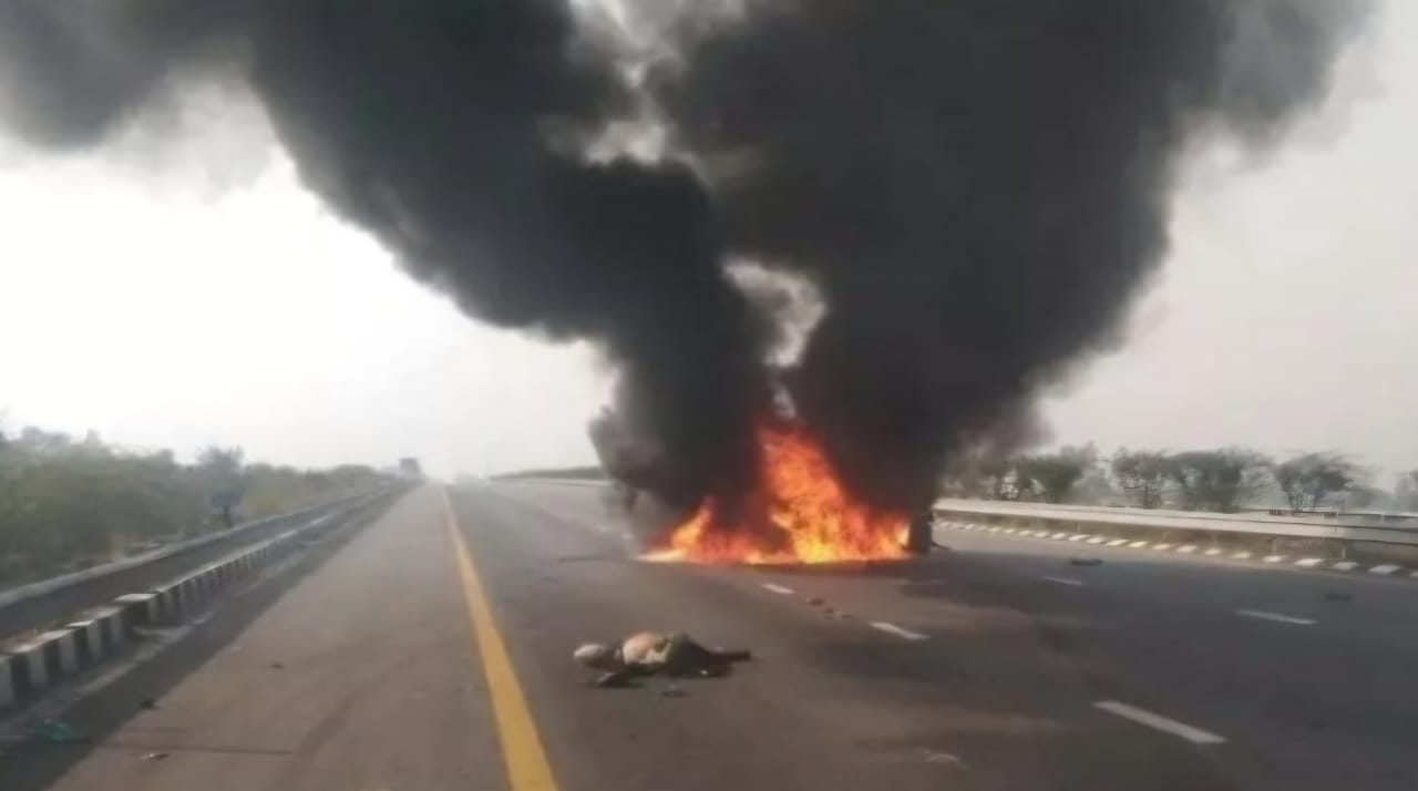 कार में सवार दो महिलाओं और तीन बच्चों समेत कुल 5 लोग जिंदा जल गए। आग लगने के कारण वे कार का दरवाजा भी नहीं खोल पाए।