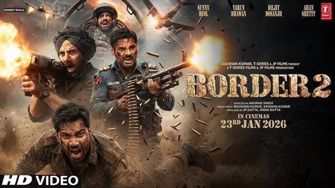 इसकी रिलीज डेट 23 जनवरी 2026 तय की गई है। फिल्म को जेपी दत्ता और भूषण कुमार प्रोड्यूस कर रहे हैं। वहीं इसका डायरेक्शन अनुराग सिंह ने संभाला है। मूवी में सोनम बाजवा, मोना सिंह, मेधा राणा, परमवीर चीमा, गुनीत संधू, अंगद सिंह भी नजर आएंगे। ये फिल्म सुनील शेट्टी के बेटे अहान के लिए माइलस्टोन मानी जा रही है। अभी तक उनके फिल्मी करियर ने खास परफॉर्म नहीं किया है. उम्मीद है बॉर्डर 2 उनके लिए मिरेकल का काम करे. टीजर में अहान की भी झलक दिखती है। वो वॉर सीन में खून से लथपथ नजर आए। दिलजीत और वरुण की भी फिल्म में एंट्री हुई है। टीजर में उनकी झलक दमदार नजर आई है।