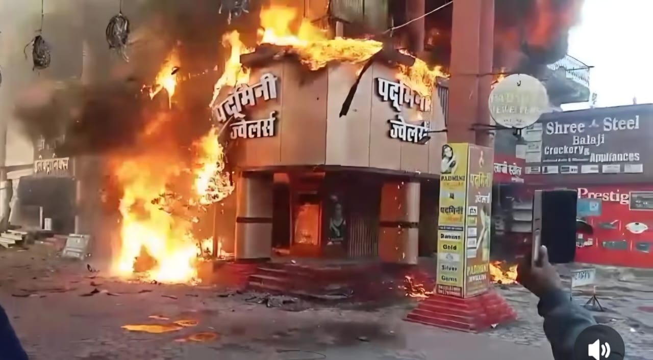 KORBA BREKING : SS प्लाजा स्थित पद्मिनी ज्वेलर्स में शार्ट सर्किट से लगी भीषण आग, कई दुकानें प्रभावित,मचा हड़कम्प ,आग पर काबू पाने में जुटी दमकल,देखें वीडियो में आग की भयावहता …