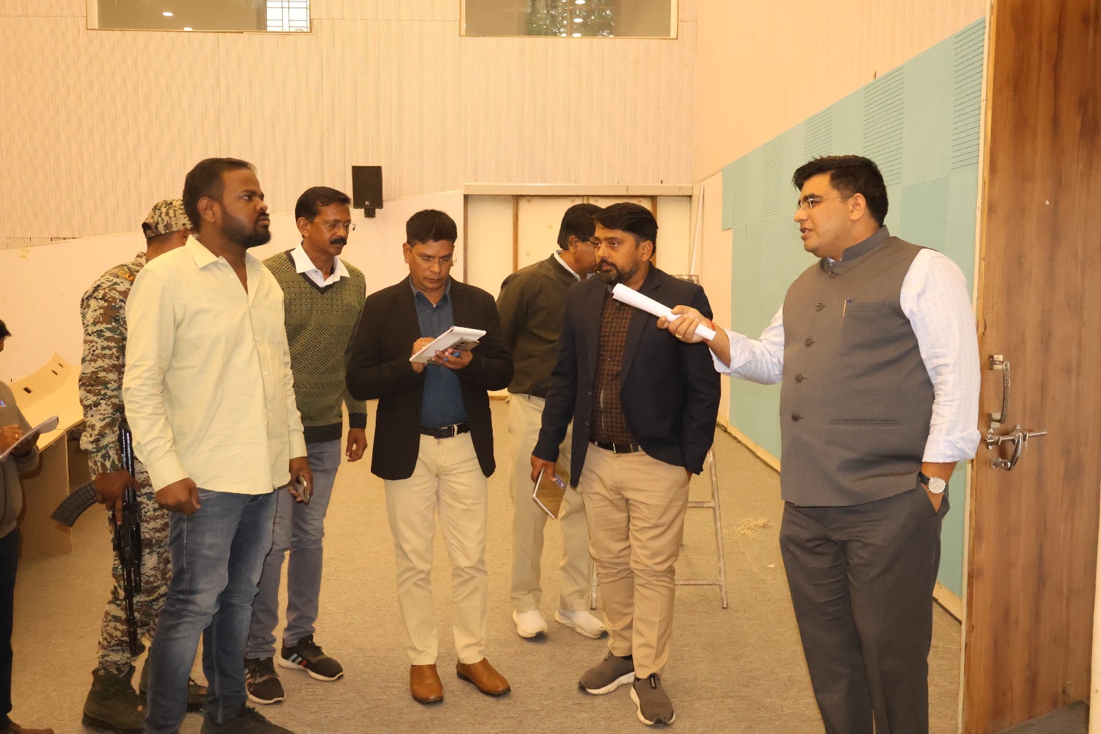 सभागार के आंतरिक परिसर का निरीक्षण करते हुए कलेक्टर ने मंच को थोड़ा विस्तृत करने*, बेहतर *वेंटिलेशन व्यवस्था*, उच्च गुणवत्ता के *ईको एवं साउंड सिस्टम* पर विशेष ध्यान देने की बात कही। उन्होंने पब्लिक एवं मीडिया गैलरी की व्यवस्था को भी सुव्यवस्थित और सुविधाजनक बनाने के निर्देश दिए।