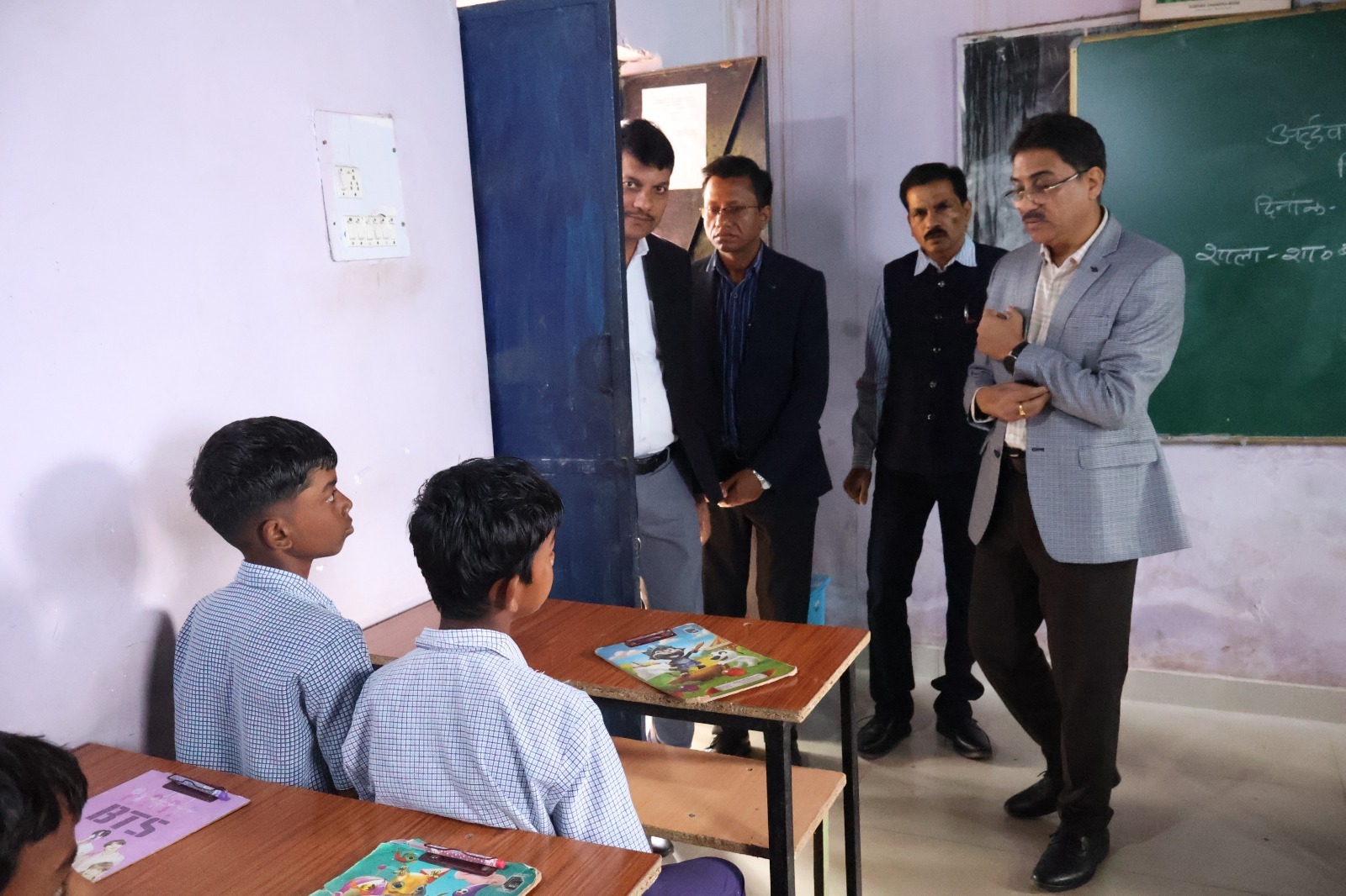 माध्यमिक विद्यालय चैतमा का निरीक्षण के दौरान कमिश्नर श्री जैन ने शिक्षकों से बच्चों की पढ़ाई, पाठ्यक्रम की प्रगति और अर्धवार्षिक परीक्षा की तैयारी की जानकारी ली। उन्होंने पाठ्यक्रम संचालन और शैक्षणिक गुणवत्ता को अधिक प्रभावी बनाने के लिए आवश्यक दिशा निर्देश भी प्रदान किए।