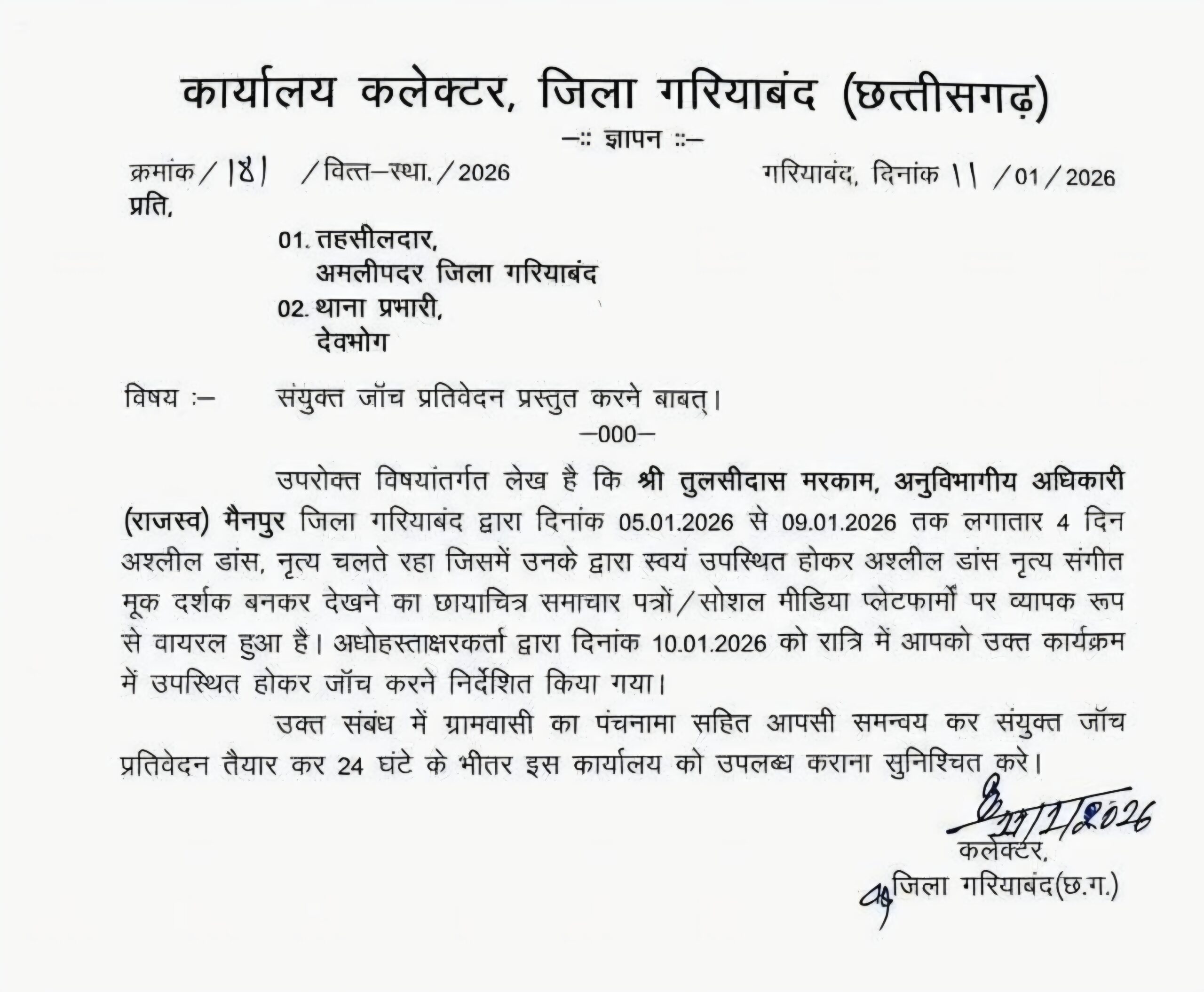 गरियाबंद । जिले के देवभोग थाना क्षेत्र अंतर्गत उरमाल गांव में आयोजित ओपेरा कार्यक्रम में प्रशासनिक अनुशासनहीनता का बड़ा विवाद सामने आया है। लोगों के मनोरंजन के नाम पर एसडीएम से अनुमति लेकर शुरू किए गए इस आयोजन में कथित तौर पर अश्लील डांस कराया गया। हैरानी की बात यह रही कि आयोजन के दौरान प्रशासनिक अधिकारी और पुलिसकर्मी भी मौके पर मौजूद रहे।मामले में वीडियो वायरल होने के बाद एसडीएम पद से हटा दिए गए ,2 पुलिसकर्मी लाइन अटैच कर दिए गए वहीं आयोजकों के खिलाफ अपराध दर्ज कर गिरफ्तारी की गई है।