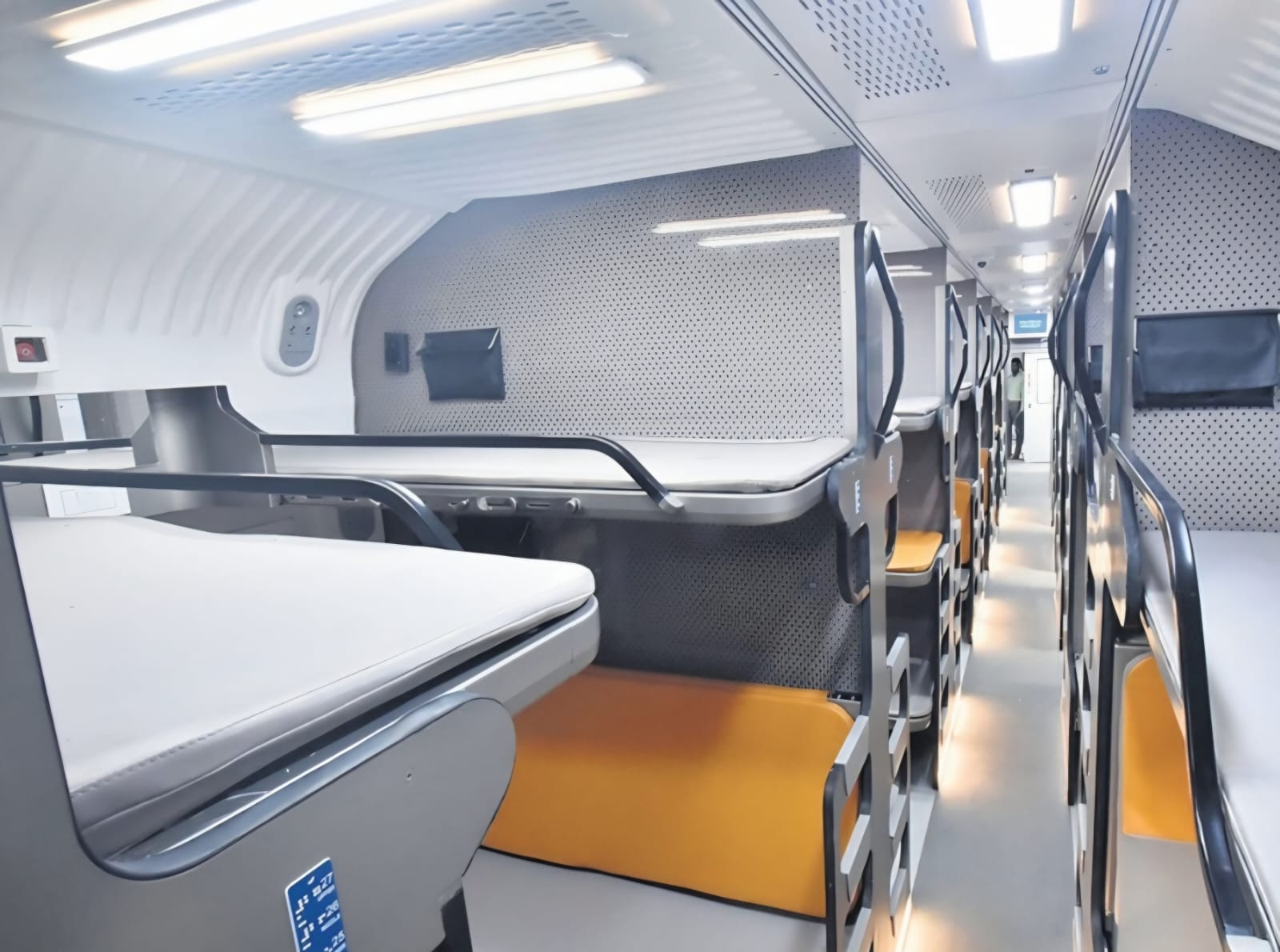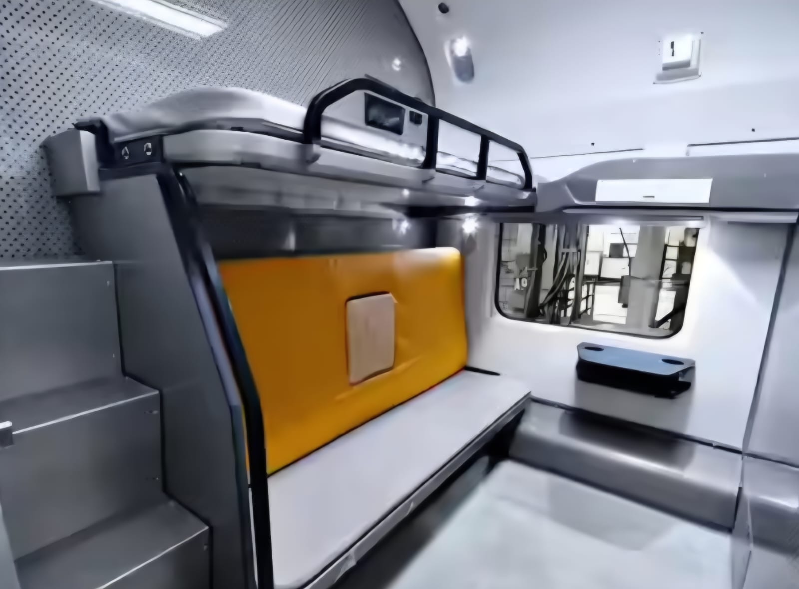 👉वंदे भारत स्लीपर ट्रेन के फर्स्ट AC कोच में ऊपरी बर्थ तक जाने के लिए सीढ़ियां दी गईं हैं।