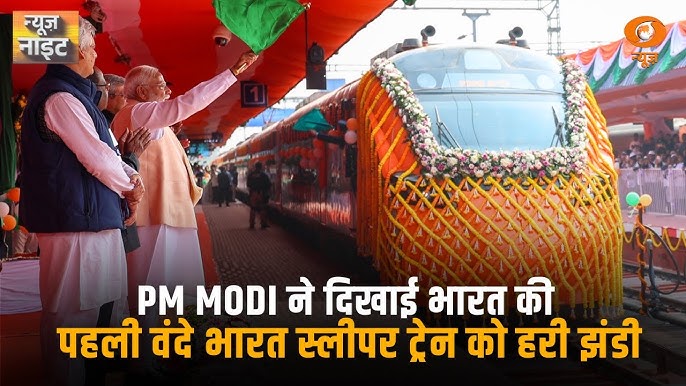 कोलकाता। PM नरेंद्र मोदी ने शनिवार को पश्चिम बंगाल के मालदा टाउन से देश की पहली वंदे भारत स्लीपर ट्रेन को हरी झंडी दिखाई। ट्रेन की अधिकतम स्पीड 180 kmph है। यह पश्चिम बंगाल के हावड़ा से गुवाहाटी (कामाख्या) के बीच 958 किलोमीटर की दूरी सिर्फ 14 घंटे में तय करेगी।