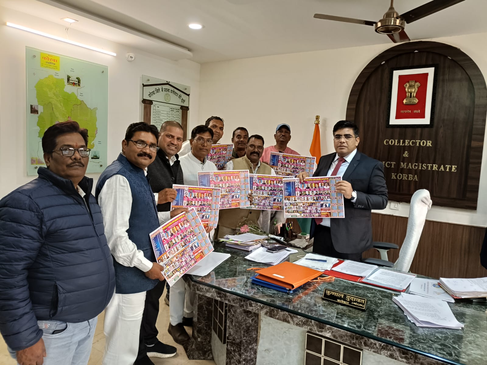 जिसमें संघ के पदाधिकारी एवं कर्मचारियों की उल्लेखनीय उपस्थिति रही कैलेंडर विमोचन अवसर पर कलेक्टर दुदावत ने संघ के प्रयासों की सराहना करते हुए नूतन वर्ष 2026 के लिए सभी कर्मचारियों को शुभकामनाएं प्रेषित की तथा संगठन को निरंतर सकारात्मक एवं रचनात्मक गतिविधियों के लिए प्रेरित किया। इस अवसर पर ओमप्रकाश बघेल महासचिव छत्तीसगढ़ कर्मचारी अधिकारी फेडरेशन कोरबा सहित संघ के पदाधिकारी गण तुमेश्वर राठौर, दिनेश सिंह, राजेंद्र मिश्रा,संवित साहू, परमानंद राजवाड़े, आनंद सोनवानी, सनत राठौर, एस के कंवर, दीनदयाल भारद्वाज, प्रकाश खाकसे, प्रीतेश जनार्दन, दीपेश यादव, रामनिवास साहू सहित अन्य पदाधिकारी एवं कर्मचारी गण उपस्थित रहे।