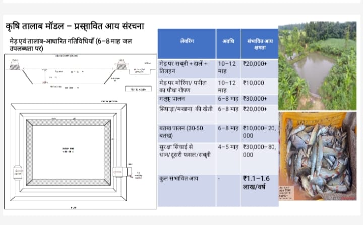 आजीविका डबरी के निर्माण से वर्षा जल संचयन, भू-जल रिचार्ज तथा खेतों में आवश्यक सिंचाई की सुविधा सुनिश्चित होगी। इससे खरीफ एवं रबी दोनों फसलों की उत्पादकता में वृद्धि होगी। साथ ही, पशुपालन एवं मत्स्य पालन जैसी गतिविधियों के माध्यम से किसानों को अतिरिक्त आय के अवसर भी प्राप्त होंगे, जिससे उनकी आर्थिक स्थिति मजबूत होगी।