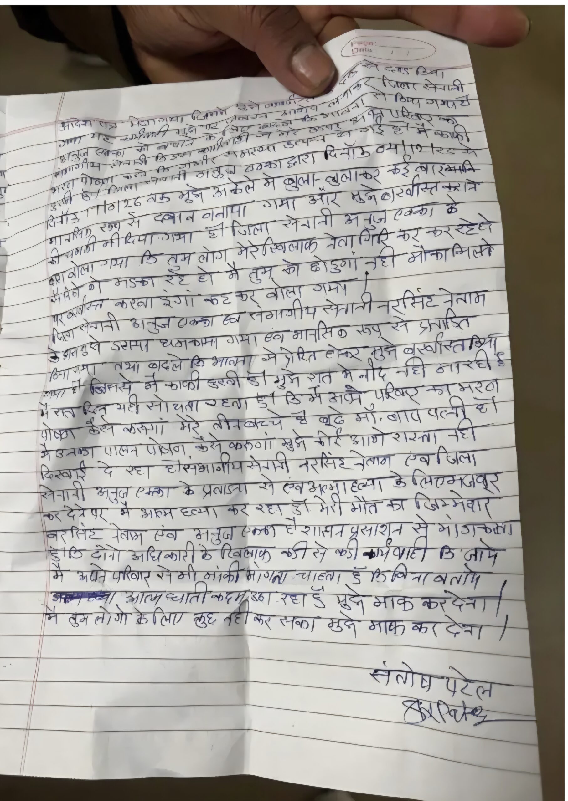 👉सुसाइड नोट बरामद, अधिकारियों पर गंभीर आरोप