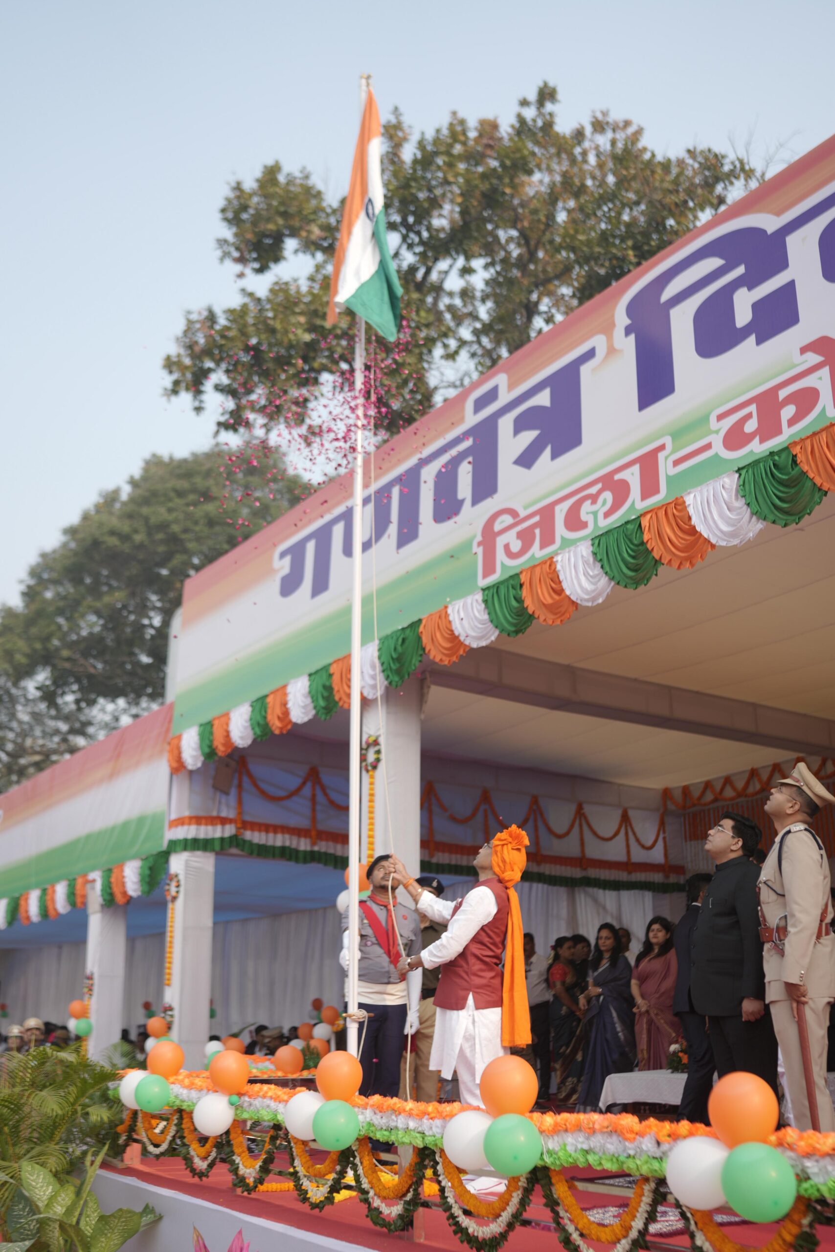 कोरबा । 77वें गणतंत्र दिवस के अवसर पर सीएसईबी फुटबॉल ग्राउंड में आयोजित गणतंत्र दिवस मुख्य समारोह में राजस्व मंत्री टंक राम वर्मा ने ध्वजारोहण कर परेड की सलामी ली। मुख्यमंत्री के जनता के नाम संदेश का वाचन किया।