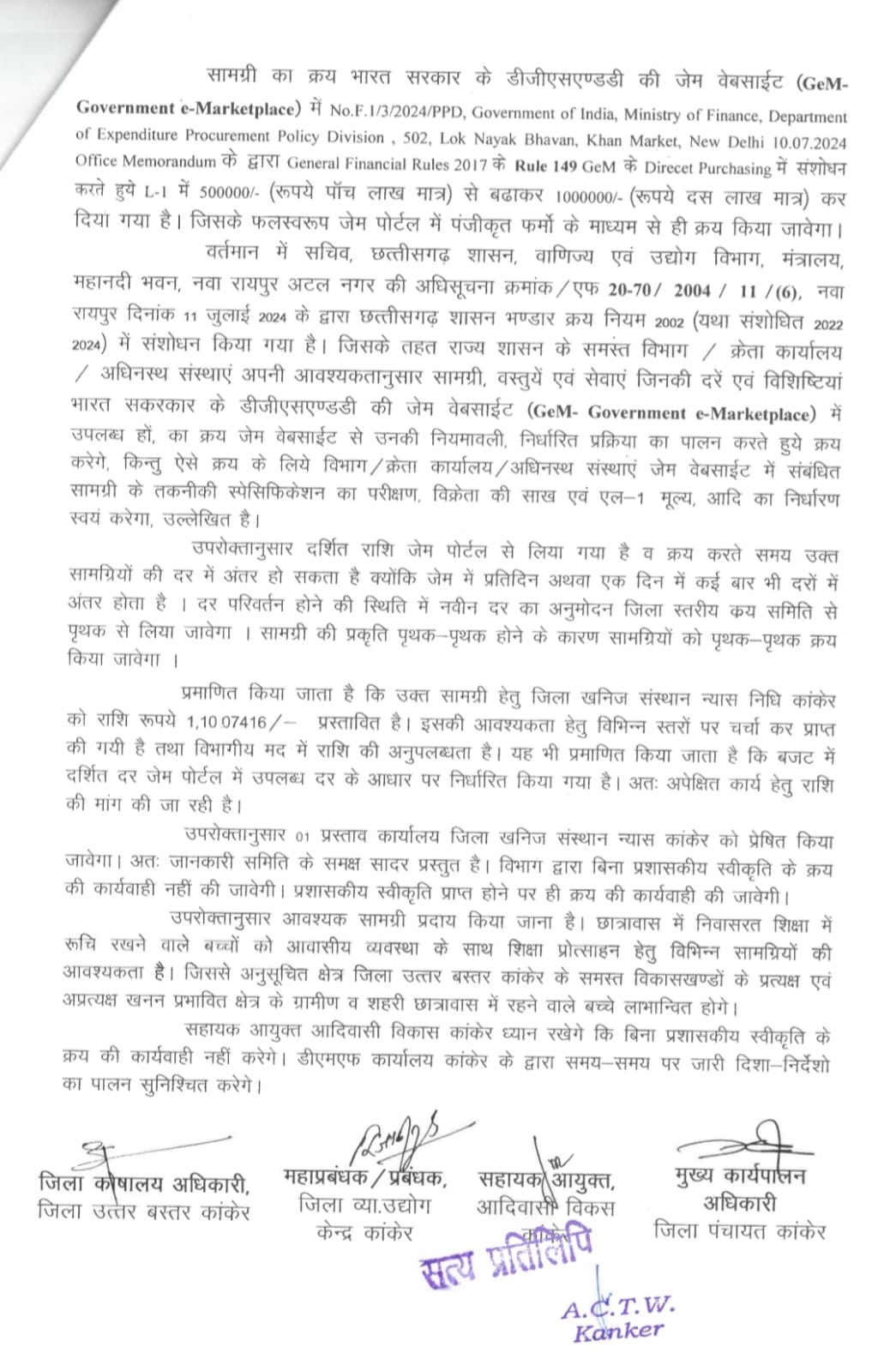 न केवल बाजार दर से दोगुने दर में कम्प्यूर टेबल की खरीदी सुर्खियां बनी हुई है वरन क्रय प्रक्रियाओं का भी विधिवत पालन नहीं किया गया है।जिला स्तरीय क्रय समिति में जिला पंचायत सीईओ हरेश मण्डावी जिला स्तरीय क्रय समिति के अध्यक्ष (कलेक्टर प्रतिनिधि)के नेतृत्व में गठित समिति में सहायक आयुक्त आदिवासी विकास विभाग सुश्री जया मनु ,महाप्रबंधक जिला व्यापार एवं उद्योग केंद्र हिमालय सेठिया एवं जिला कोषालय अधिकारी रामानंद कुंजाम सदस्य के रूप में शामिल किए गए थे। लेकिन इसे गम्भीर चूक कहें या सोंची समझी चालाकी की जिला स्तरीय क्रय समिति के सदस्यों