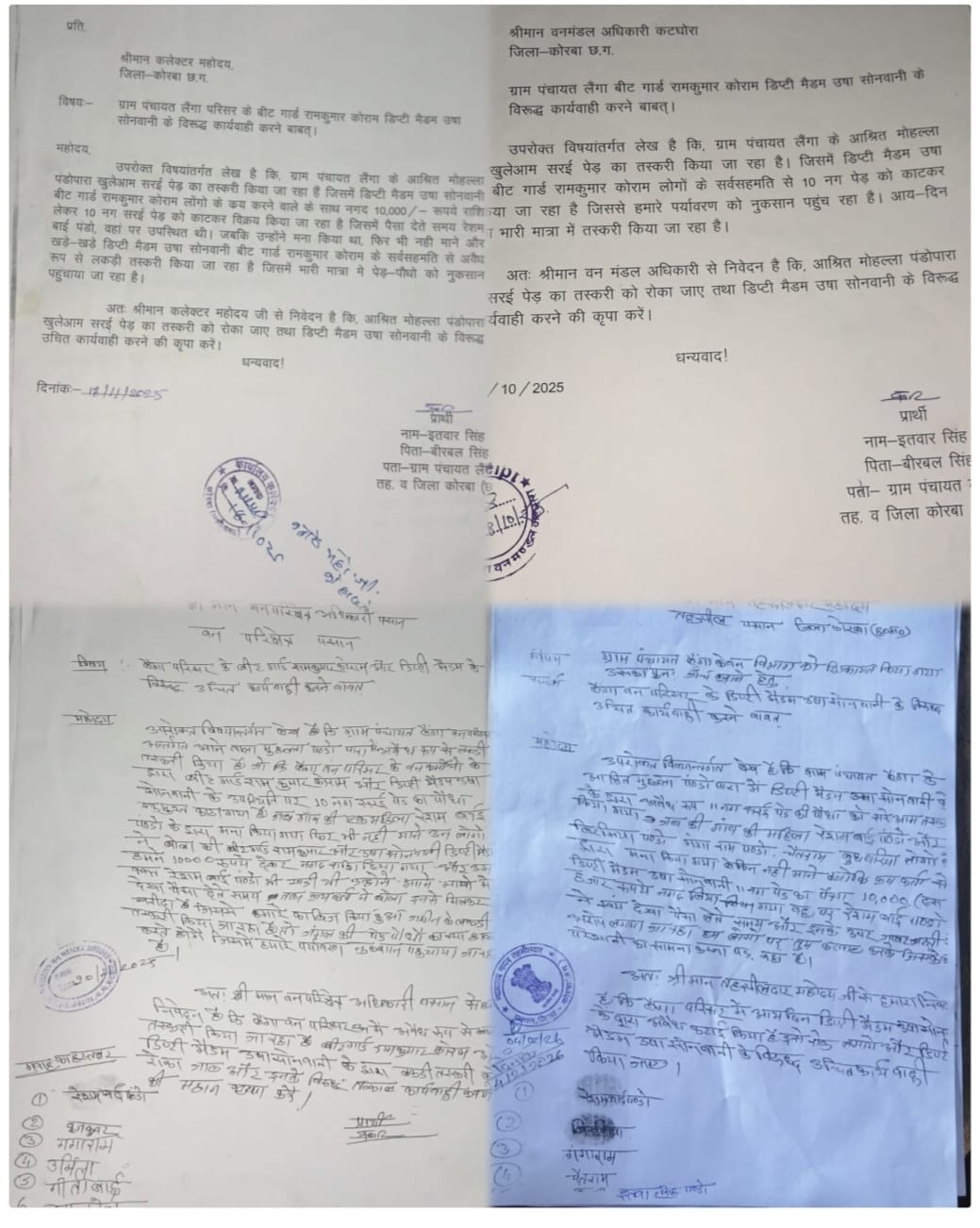 कोरबा। जिले के कटघोरा वन मण्डल के अंतर्गत आने वाले ग्राम पंचायत लैंगा के वन परिसर के बीट गार्ड रामकुमार कोराम व डिप्टी रेंजर उषा सोनवानी के विरूद्ध गम्भीर आरोप लगे हैं। कलेक्टर, डीएफओ से लगातार पत्राचार के बाद भी कोई कार्यवाही नहीं होने से पुनः शिकायत की गई है।