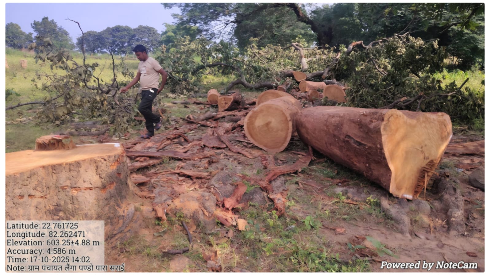 अक्टूबर 2025 से की जारी शिकायत के बाद एक बार फिर अधिकारियों से निवेदन किया गया है कि, आश्रित मोहल्ला पंडोपारा में खुलेआम सरई पेड़ की तस्करी को रोका जाए तथा डिप्टी मैडम उषा सोनवानी के विरूद्ध उचित कार्यवाही की जाय।
