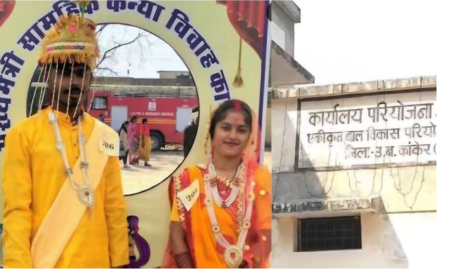 कांकेर -पखांजूर। गरीब परिवारों के जोड़ों की शादी कराने सरकार ने 10 फरवरी को प्रदेशभर में 6,412 शादियां कराई. इसी दिन मुख्यमंत्री कन्या विवाह योजना के 50 हजार रुपए के लालच में कांकेर जिले में पहले से शादीशुदा जोड़े ने दोबारा शादी रचा ली. मामला प्रकाश में आने पर विभाग ने सख्ती बरती है. जोड़े को प्रोत्साहन राशि वापस करने के निर्देश दिए गए हैं. वहीं आंगनबाड़ी कार्यकर्ताओं को शो कॉज नोटिस जारी किया है.