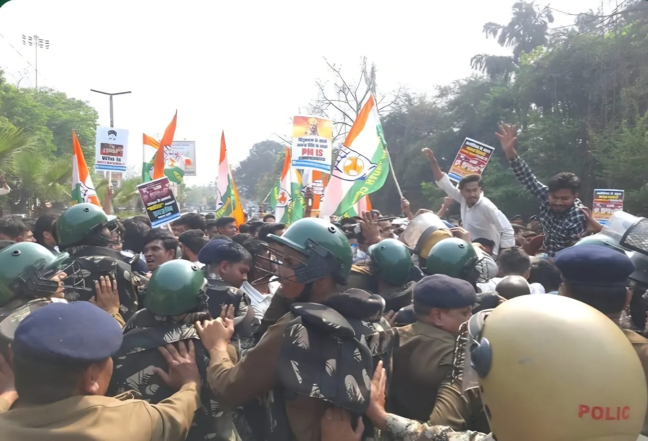रायपुर । दिल्ली AI समिट विवाद की आग अब रायपुर की सड़कों तक पहुँच गई है। शनिवार को भाजपा और कांग्रेस के युवा मोर्चों के बीच जोरदार शक्ति प्रदर्शन और हंगामे की स्थिति बनी रही।