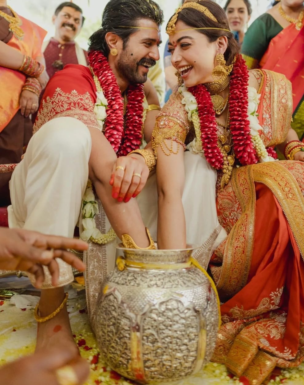 पिछले साल अक्टूबर में रश्मिका और विजय ने परिवार की मौजूदगी में सगाई की थी। यह फंक्शन काफी प्राइवेट था लेकिन बाद में रश्मिका की हाथ में बड़ी सी अंगूठी देखकर ये कन्फर्म हो गया कि दोनों की सगाई हो चुकी है। अब 26 फरवरी को रश्मिका और विजय ने शादी कर ली है और फैंस को खुशखबरी दी है।