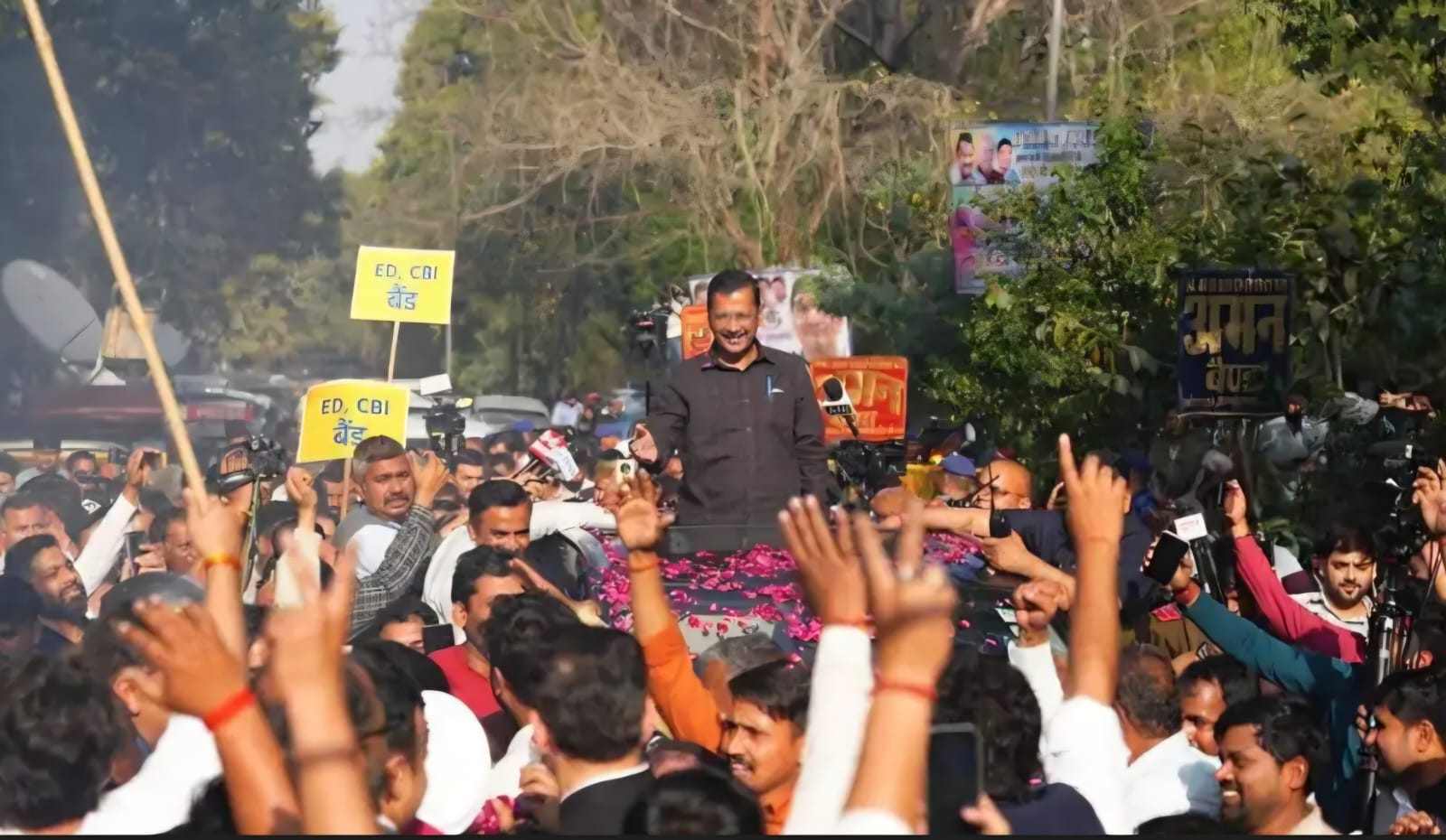 👉रोड शो कर पार्टी मुख्यालय पहुंचे केजरीवाल