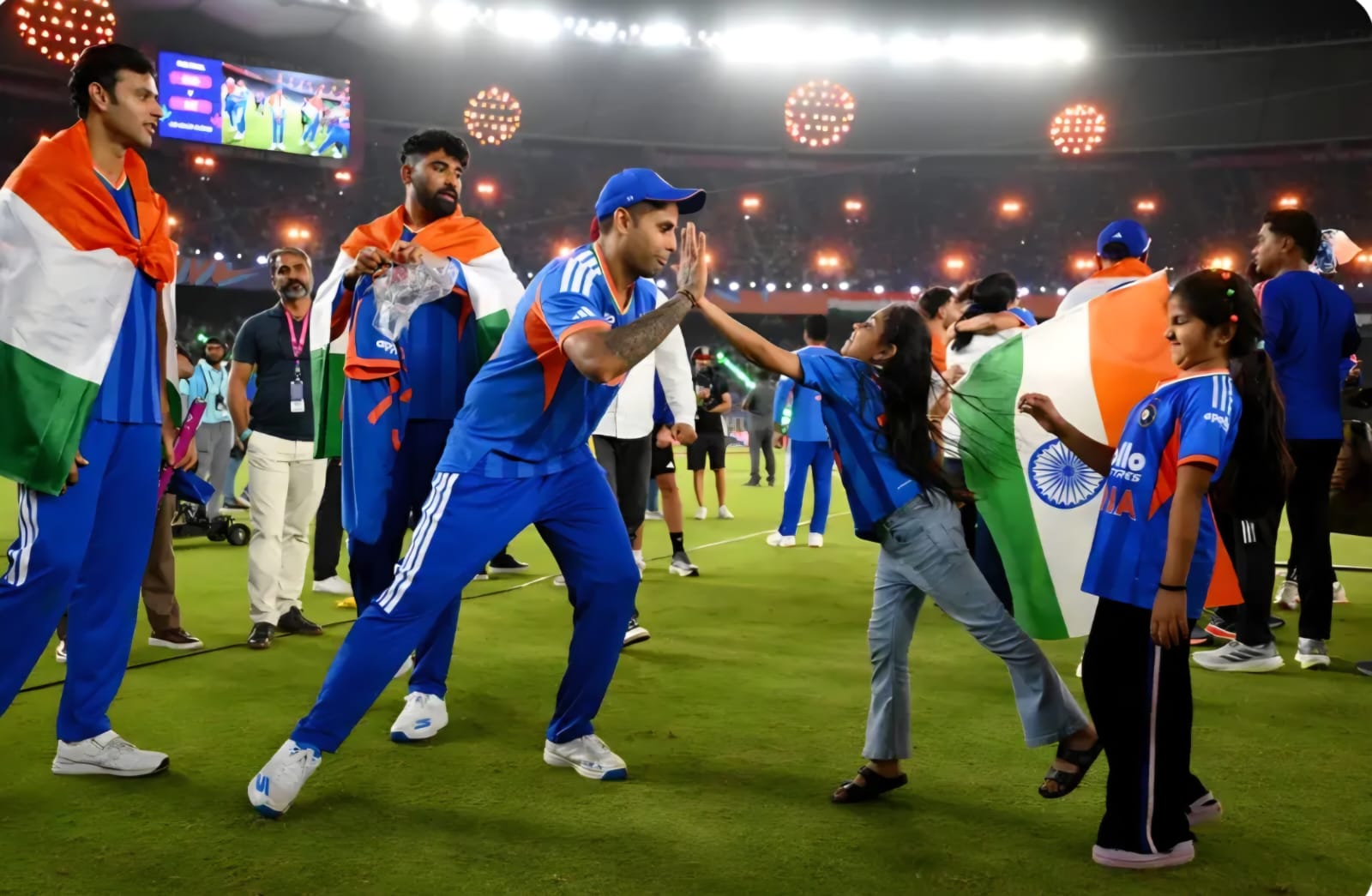 1.20 लाख की दर्शक क्षमता वाली दुनिया की सबसे बड़ी अहमदाबाद स्थित नरेंद्र मोदी स्टेडियम में भारत 2023 वनडे विश्वकप फाइनल में हारने के अलावा इसी सीरीज में सुपर -8 के पहले मुकाबले में दक्षिण अफ्रीका से 76 रनों से हार गई थी। लिहाजा फैन्स के मन में इस स्टेडियम को अनलकी स्टेडियम बताया जा रहा था,आखिरकार रविवार को भारत के 98 रनों से खिताबी जीत के साथ ही यह मिथक टूट गया। भारतीय टीम की इस जीत पर प्रधानमंत्री नरेंद्र मोदी ,गृहमंत्री अमित शाह समेत देश विदेश के दिग्गज हस्तियों की भारतीय टीम को शुभकामनाओं का तांता लग गया है। गृहमंत्री अमित शाह ने परिवार के साथ स्टेडियम में ही मैच देख टीम के खिलाड़ियों का हौसला बढ़ाया।