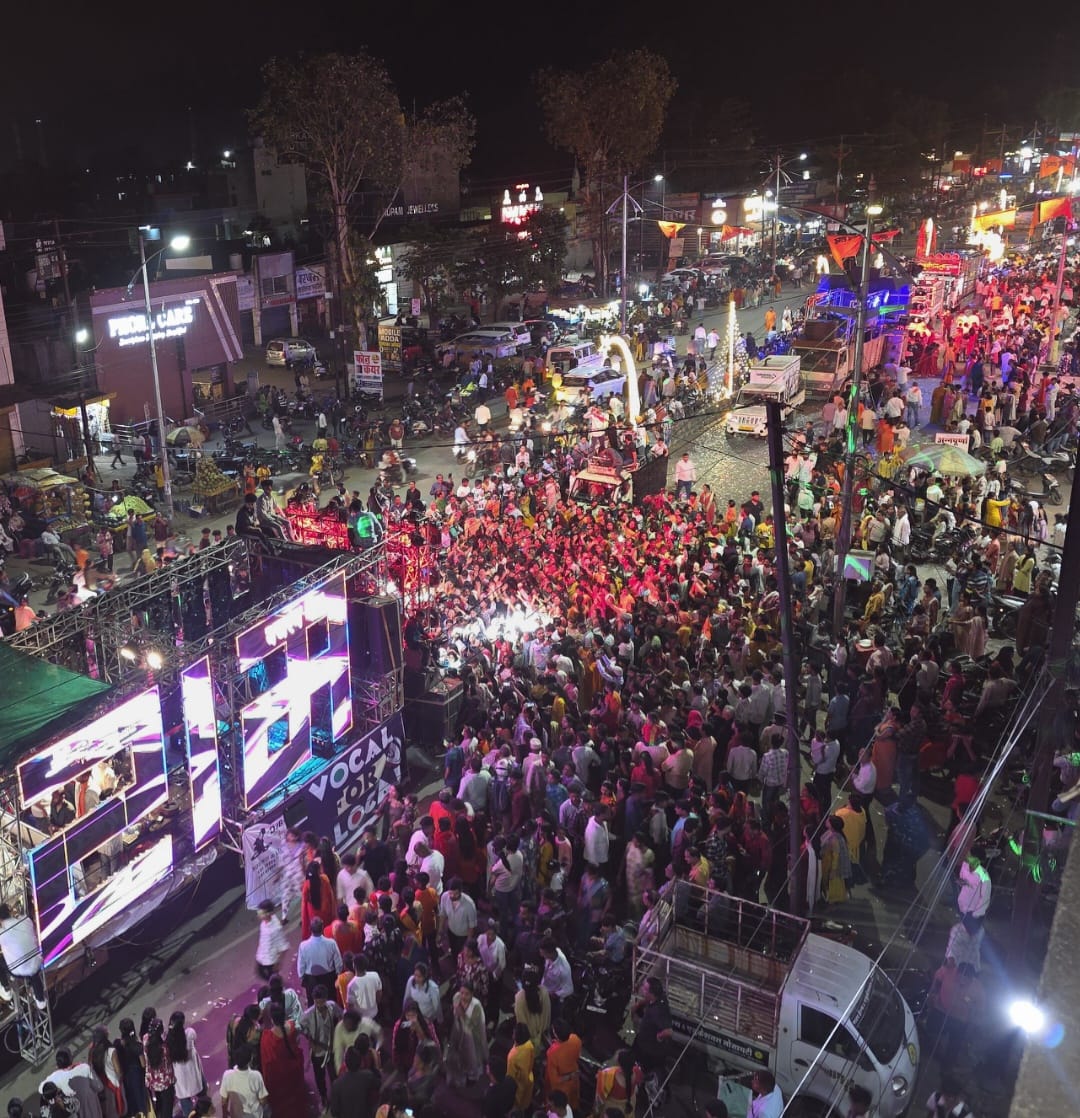 शोभायात्रा में भगवान राम,माता सीता की मनोहारी झांकी देखते ही बन रही थी।देव आराधना के साथ विशाल और भव्य शोभायात्रा,डीजे की धुन पर प्रारंभ हुई।