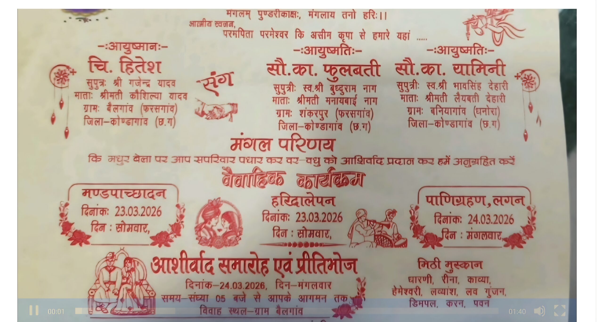 शादी से पहले दूल्हे ने बाकायदा ऐसा विवाह कार्ड छपवाया, जिसमें दोनों दुल्हनों के नाम शामिल थे। यही कार्ड सोशल मीडिया पर जमकर वायरल हुआ और इस अनोखी शादी को लेकर लोगों में उत्सुकता बढ़ गई।