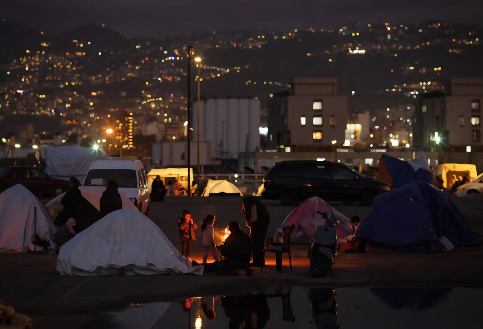 लेबनान के बेरूत में विस्थापित लोगों के लिए अस्थायी शिविर बनाए गए हैं। तस्वीर में इन अस्थायी शिविर के बाहर बच्चे खेलते नजर आ रहे हैं।
