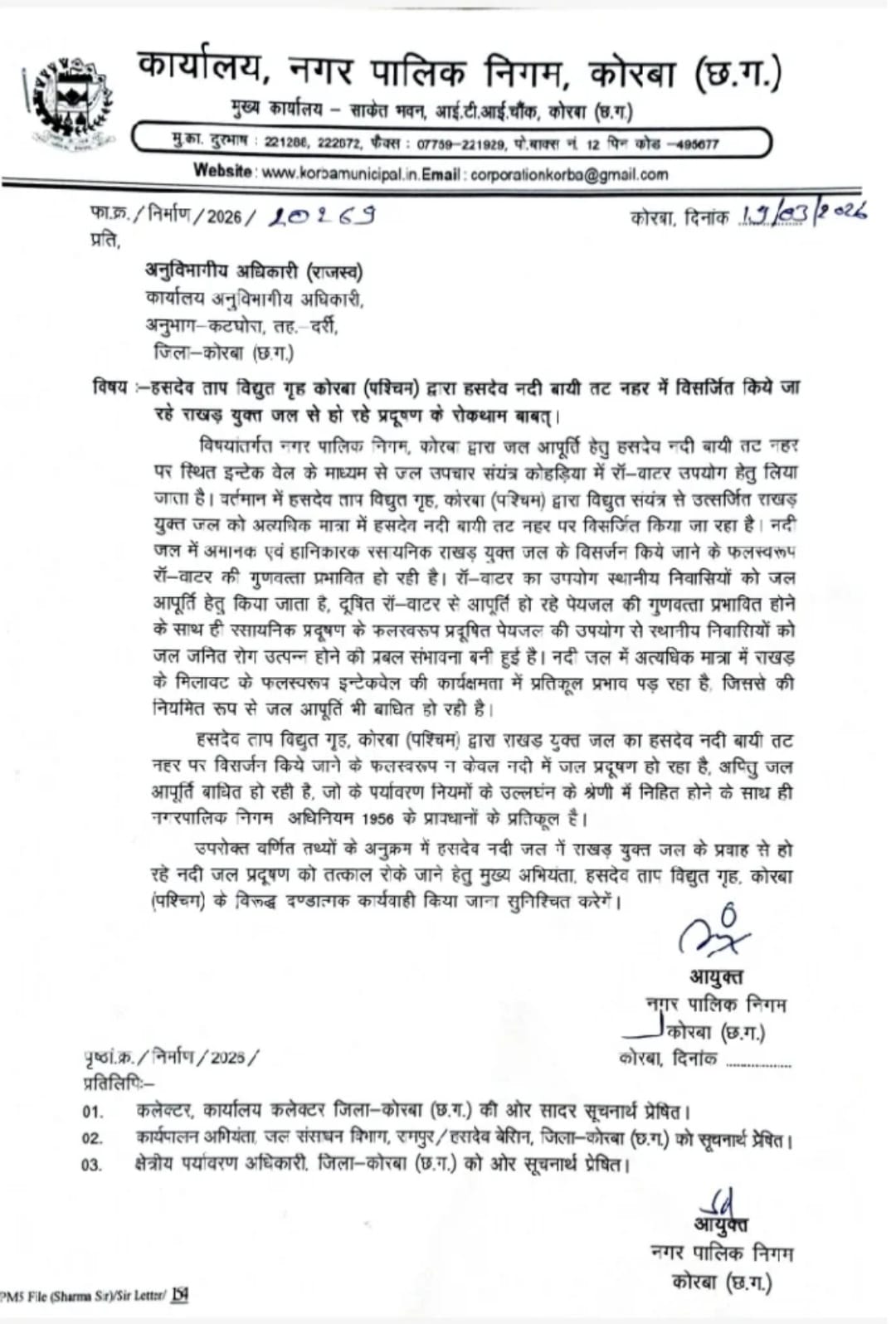 सूत्रों के मुताबिक, इस राखड़ युक्त पानी में मौजूद खतरनाक रसायन पेयजल को दूषित कर रहे हैं। इससे जलजनित बीमारियों का खतरा तेजी से बढ़ सकता है। विशेषज्ञ मानते हैं कि लंबे समय तक ऐसा पानी इस्तेमाल होने पर स्वास्थ्य पर गंभीर असर पड़ सकता है। मामला यहीं नहीं रुकता। नदी में बढ़ती राखड़ की मात्रा इंटेकवेल सिस्टम को भी प्रभावित कर रही है, जिससे शहर की जल आपूर्ति पर सीधा खतरा मंडरा रहा है। अगर हालात ऐसे ही रहे तो आने वाले दिनों में पानी की सप्लाई भी बाधित हो सकती है। नगर निगम ने इसे पर्यावरण नियमों का खुला उल्लंघन बताया है और तुरंत प्रभाव से प्रदूषण रोकने के निर्देश दिए हैं। साथ ही जिम्मेदार अधिकारियों और प्लांट प्रबंधन के खिलाफ कड़ी कार्रवाई की मांग भी की गई है। अब सबसे बड़ा सवाल यही है कि क्या समय रहते इस पर रोक लगेगी या कोरबा के लोगों को जहरीला पानी पीने के लिए छोड़ दिया जाएगा? शहर में इस मुद्दे को लेकर आक्रोश बढ़ता जा रहा है और लोग जवाब मांग रहे हैं।