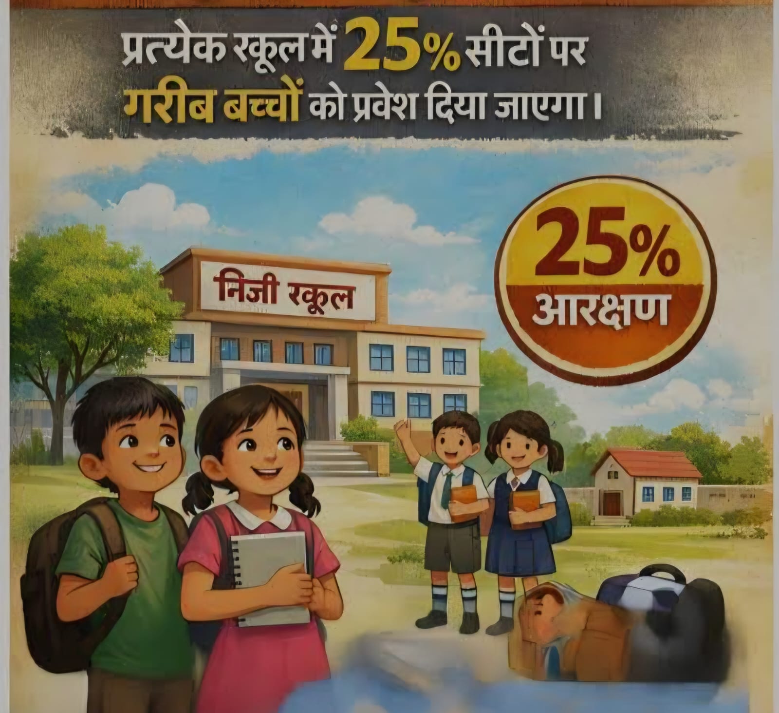 अनिवार्य बाल शिक्षा का अधिकार अधिनियम (आरटीई), 2009 अप्रैल 2010 से प्रभावी है। इसके तहत प्रदेश के गैर-अनुदान प्राप्त निजी विद्यालयों की प्रारंभिक कक्षाओं में 25 प्रतिशत सीटें आर्थिक रूप से कमजोर, दुर्बल वर्ग और वंचित समूह के बच्चों के लिए आरक्षित हैं। इन सीटों पर बच्चों को उनके निवास क्षेत्र के भीतर प्रवेश दिलाना अनिवार्य है।
