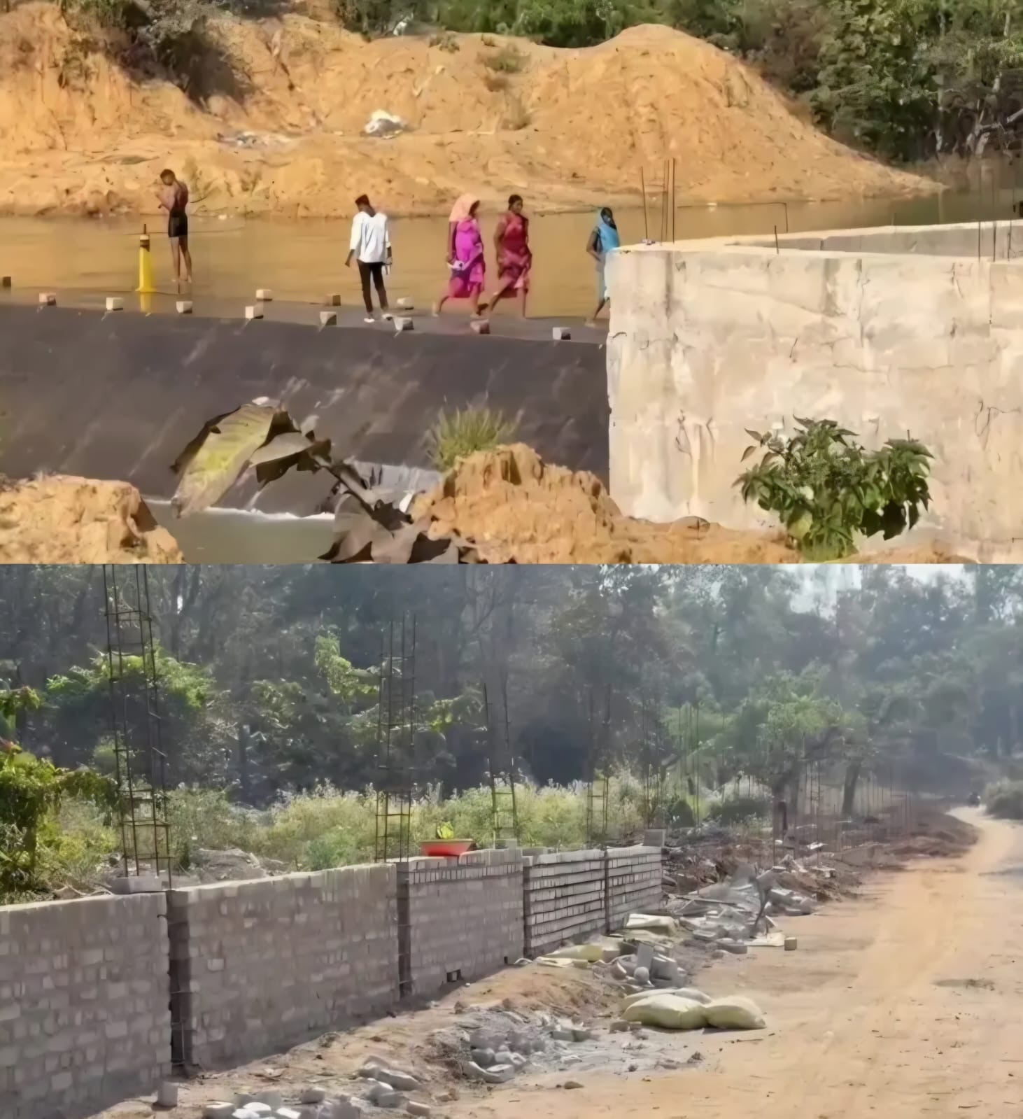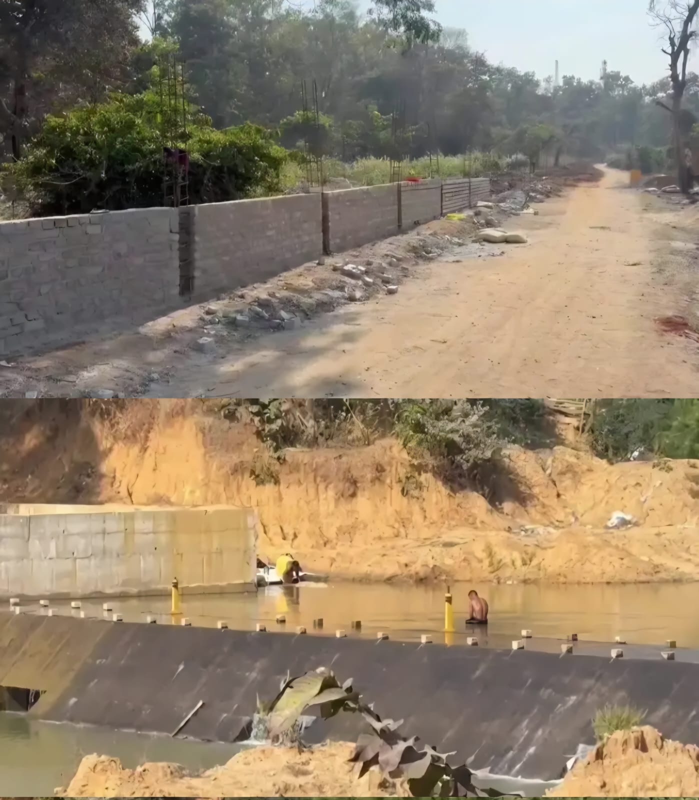बाउंड्रीवॉल निर्माण का कार्य जारी रखा गया।
