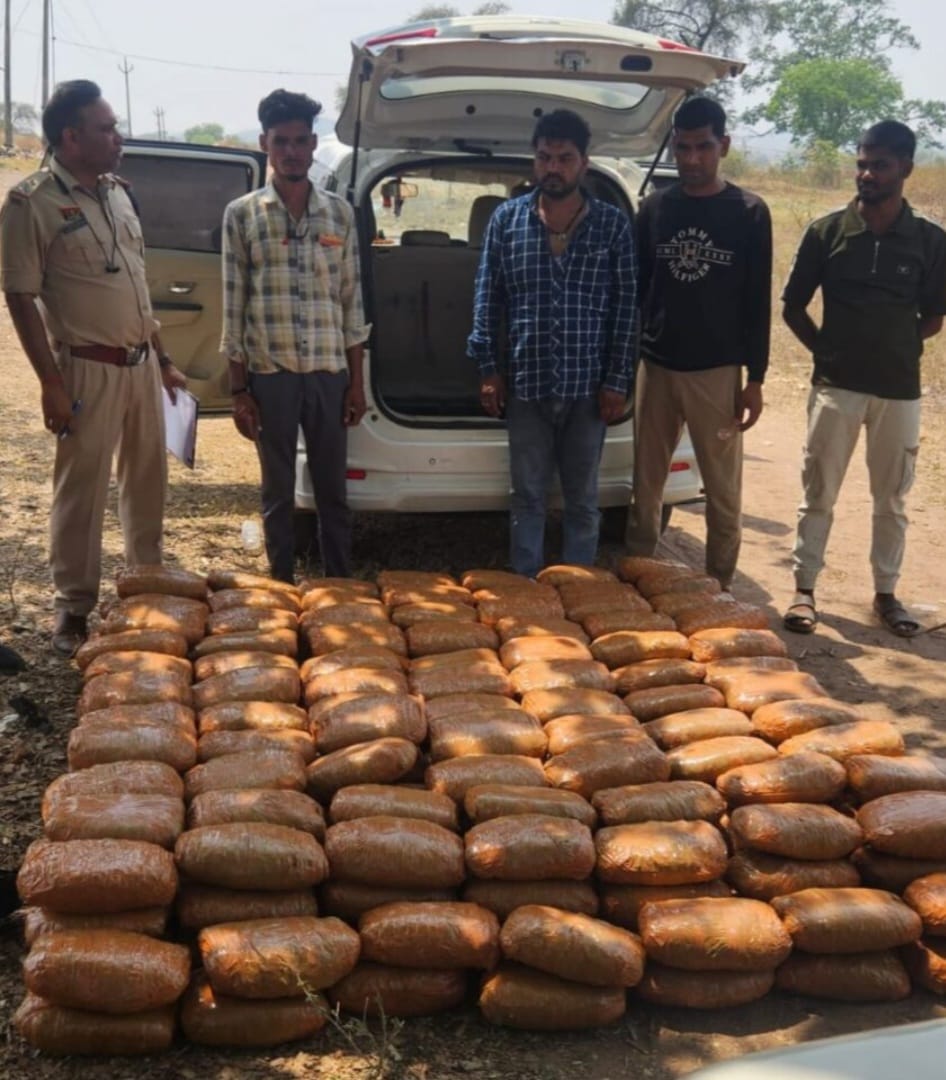 विवरण इस प्रकार है कि दिनांक 17.04.2026 को बिलासपुर पुलिस को सूचना मिला कि मारुति अर्टिगा कार क्र. CG 04QD 7255 में अवैध रूप से भारी मात्रा में मादक पदार्थ गांजा कटघोरा की ओर से मरवाही के रास्ते मध्यप्रदेश ले जा रहे है, कि सूचना पर थाना रतनपुर पुलिस व एसीसीयू की संयुक्त टीम द्वारा उक्त संबंध में वरिष्ठ पुलिस अधीक्षक जिला बिलासपुर रजनेश सिंह (भा.पु.से.), अतिरिक्त पुलिस अधीक्षक (ग्रामीण) श्रीमती मधुलिका सिंह एवं सीएसपी सिविल लाइन निमितेश परिहार,श अनुविभागीय अधिकारी (पुलिस) कोटा श्रीमती नूपुर उपाध्याय को अवगत कराकर, उच्च अधिकारियों से प्राप्त दिशा निर्देशन पर रेड कार्यवाही करने टीम नेशनल हाईवे नवापारा चौक भेडी मुंडा के पास रवाना हुई थी, कि कटघोरा की ओर से आ रही अर्टिगा कार क्र. CG 04QD 7255 को चेक करने पर भारी मात्रा में मादक पदार्थ गांजा 245 किलोग्राम कीमती 1 करोड़ 22 लाख रुपए व गांजा परिवहन में प्रयुक्त वाहन अर्टिगा को आरोपी अमित कुमार केवट निवासी भुतही टोला बुढार से जप्त कर , उक्त व्यक्ति के विरूद्ध थाना रतनपुर में नारकोटिक एक्ट के तहत कार्यवाही किया गया।