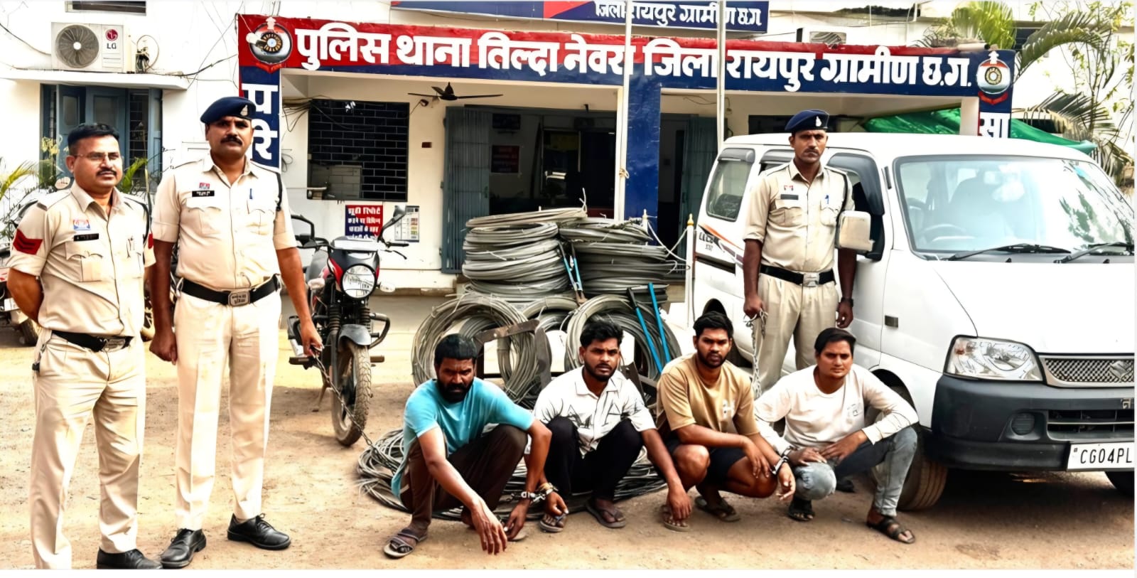 रायपुर । रायपुर ग्रामीण पुलिस ने तिल्दा-नेवरा और खरोरा क्षेत्र में बिजली वायर चोरी करने वाले एक संगठित गिरोह का भंडाफोड़ किया है। पुलिस ने इस मामले में चार आरोपियों को गिरफ्तार करते हुए करीब 7 लाख रुपये का चोरी का सामान और वारदात में इस्तेमाल वाहन जब्त किए हैं।